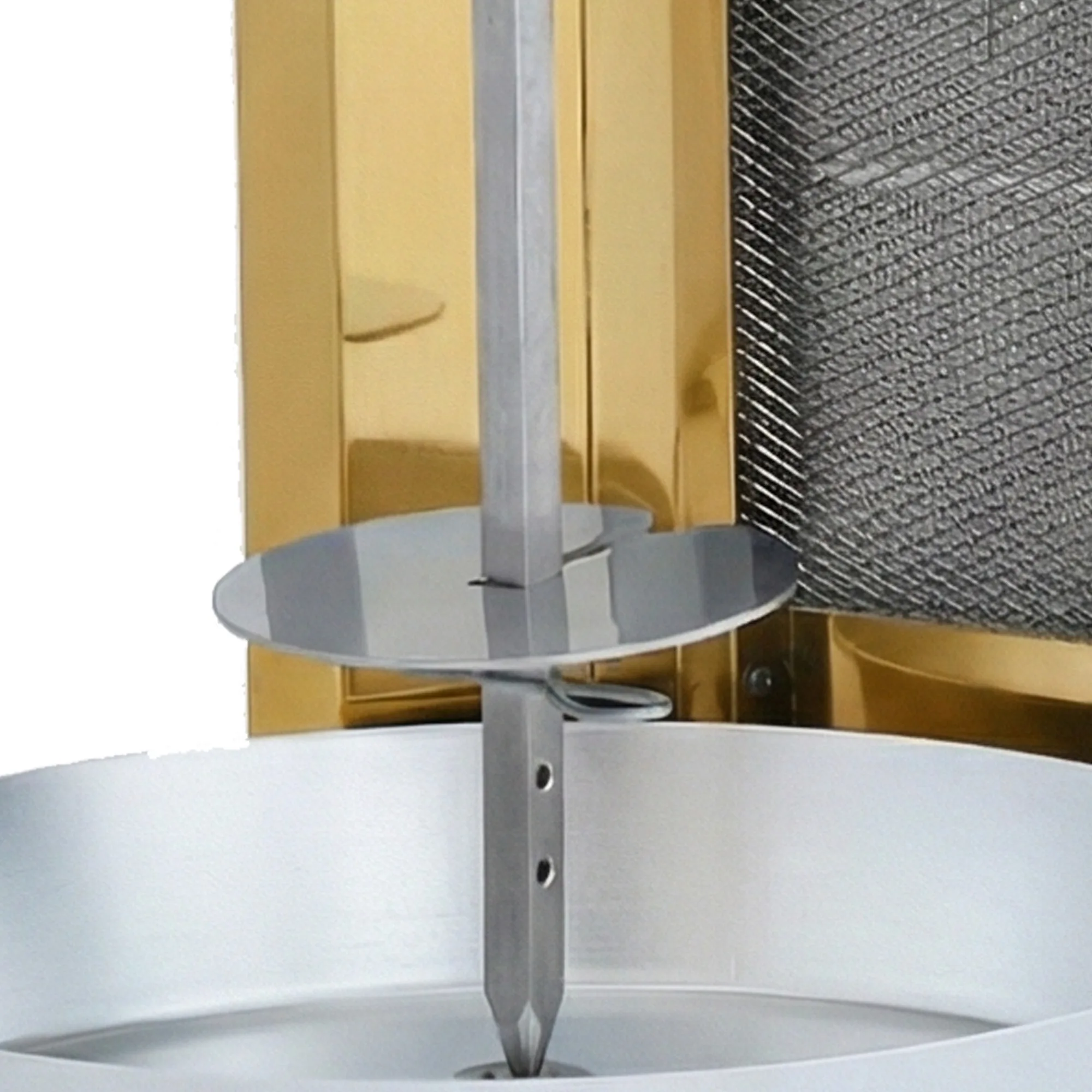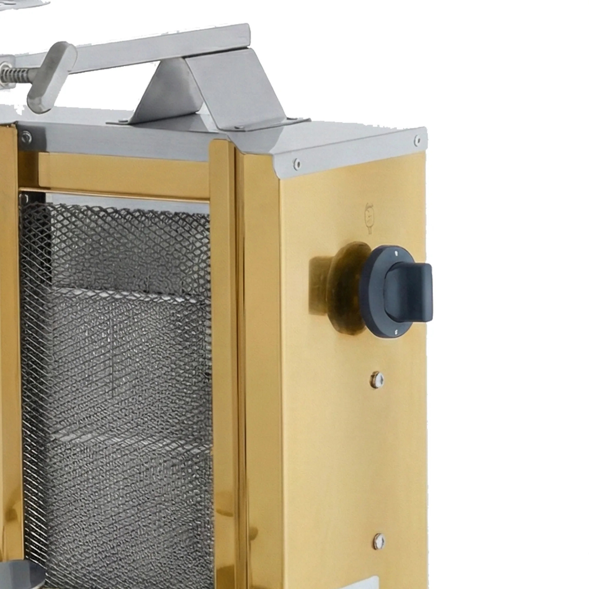 تجمع شركة ديبكسان بين خبرتها في مجال المطابخ الصناعية وراحة المنزل. فرن كباب دونر ذهبي DBS 501إنها ليست مجرد أداة طهي، بل قطعة فنية فاخرة ستكون محور مطبخك. يوفر تصميمها العمودي المشع كفاءة قصوى في المساحات الضيقة، حيث تشغل مساحة صغيرة على سطح العمل مع طهي 10 كيلوغرامات من قطع اللحم بكفاءة حرارية عالية. كما يتيح لك تشغيلها اليدوي تجربة تقطيع الكباب التقليدي براحة تامة في منزلك. نظام هيكل متحرك من الفولاذ المقاوم للصدأ (هيكل منزلق) بفضل ذلك، يمكنك ضبط المسافة بين الحرارة المشعة واللحم بدقة تصل إلى المليمتر، والتحكم في سرعة الطهي على الفور.