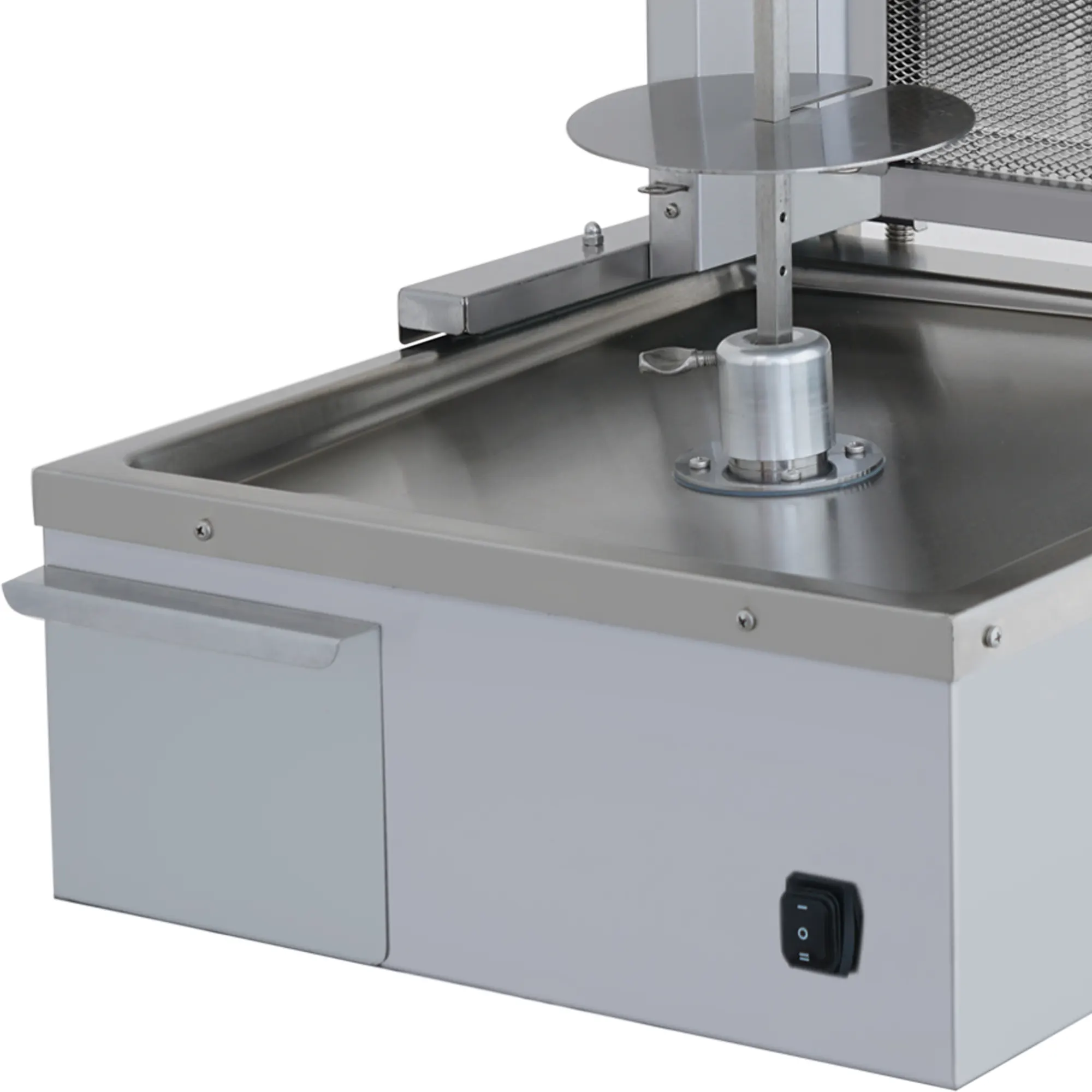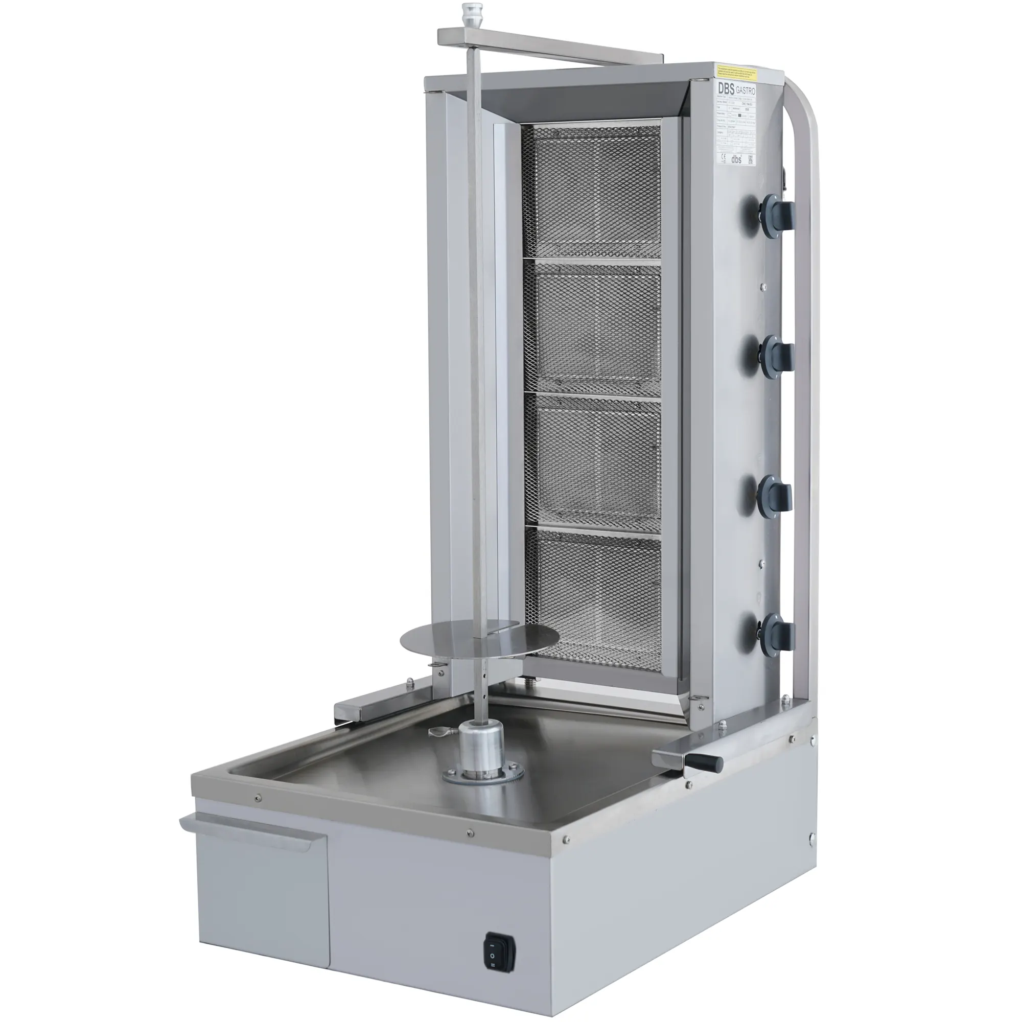 Betriebssicherheit,Gewerbliche Shawarma Maschine Das Herzstück des DMC 104 ist das integrierte Flammenregelungssystem mit Sicherheitsventil und hochpräzisen Thermoelementen, das die Gaszufuhr bei Flammenausfall innerhalb von Sekunden automatisch unterbricht. Das integrierte Sicherungssystem schützt den Motor vor Stromschlägen, und der bidirektionale Motorlauf maximieren die Lebensdauer des Geräts und erhöhen gleichzeitig den Bedienkomfort. Die große 2-Liter-Fettauffangschublade und die perforierte Edelstahl-Siebschale verhindern, dass überschüssiges Fett mit dem Fleisch in Berührung kommt und sorgen so für eine ansprechende Präsentation. (Dibeksan's) CE-zertifiziert. Ausgestattet mit fortschrittlicher Produktionstechnologie verspricht dieses Modell nachhaltige Effizienz und zuverlässige Partnerschaftslösungen für B2B-Geschäftspartner auf dem globalen Markt.