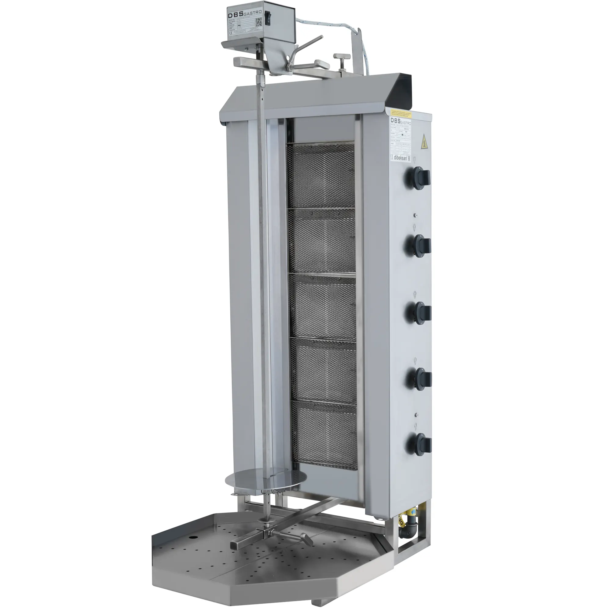 Sorgfältig entwickelt, um den hohen Anforderungen professioneller Kebabküchen hinsichtlich Kapazität, Langlebigkeit und Hygiene gerecht zu werden. DMUG 105 Döner Kebab OfenDies ist eines der effizientesten Modelle von Dibeksan und spiegelt die Expertise des Unternehmens im Bereich Industrietechnik wider. Dank seiner fünf unabhängig voneinander steuerbaren Strahlungsheizelemente gart dieses Gerät 80 kg schwere Fleischstücke perfekt bis in den Kern und vereint dabei hohe Betriebsgeschwindigkeit mit gleichbleibend hoher Geschmacksqualität. Der entscheidende technische Vorteil des Geräts ist… Oben montierte motorisierte StrukturDiese Konstruktion minimiert den mechanischen Verschleiß, indem sie den Motor vor der intensiven Hitze und den beim Kochen entstehenden Öldämpfen schützt. Das durchdachte Design maximiert die Lebensdauer des Motors und gewährleistet gleichzeitig, dass die Bodenplatte frei bleibt, was eine schnelle und mühelose Reinigung ermöglicht.