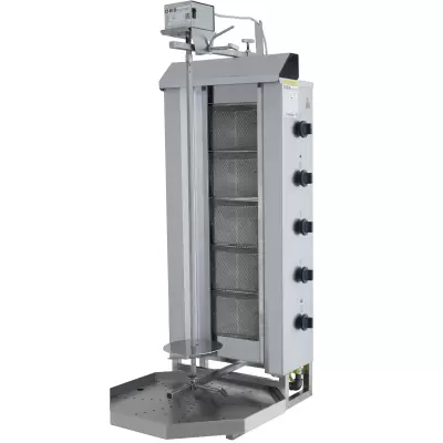 DMUG 105 macht keine Kompromisse bei den Hygienestandards. Gewerbliche Shawarma MaschineVollständige Einhaltung der Lebensmittelvorschriften an jedem Punkt des Kontakts mit Fleisch. Edelstahl der Güteklasse AISI 304 Dieses Modell, gefertigt mit hochpräzisen Thermoelementen und einem Flammenregelungssystem mit Sicherheitsventil für maximale Betriebssicherheit, garantiert Küchensicherheit durch automatische Gasabschaltung innerhalb von Sekunden bei drohendem Flammenausfall. Das millimetergenaue Schiebesystem ermöglicht die Vor- und Rückwärtsbewegung des beweglichen Edelstahlkörpers und erlaubt Köchen, den Garabstand präzise an den Rotationsdurchmesser anzupassen, um ein Austrocknen des Fleisches zu verhindern. Ausgestattet mit einem bidirektionalen Motor, einer großen 2-Liter-Fettauffangschublade und einem perforierten Siebeinsatz, bietet dieses Modell… CE-zertifiziert. Dank seiner hohen Produktionsqualität stellt es eine verlässliche Investition für kulinarische Profis weltweit dar.
