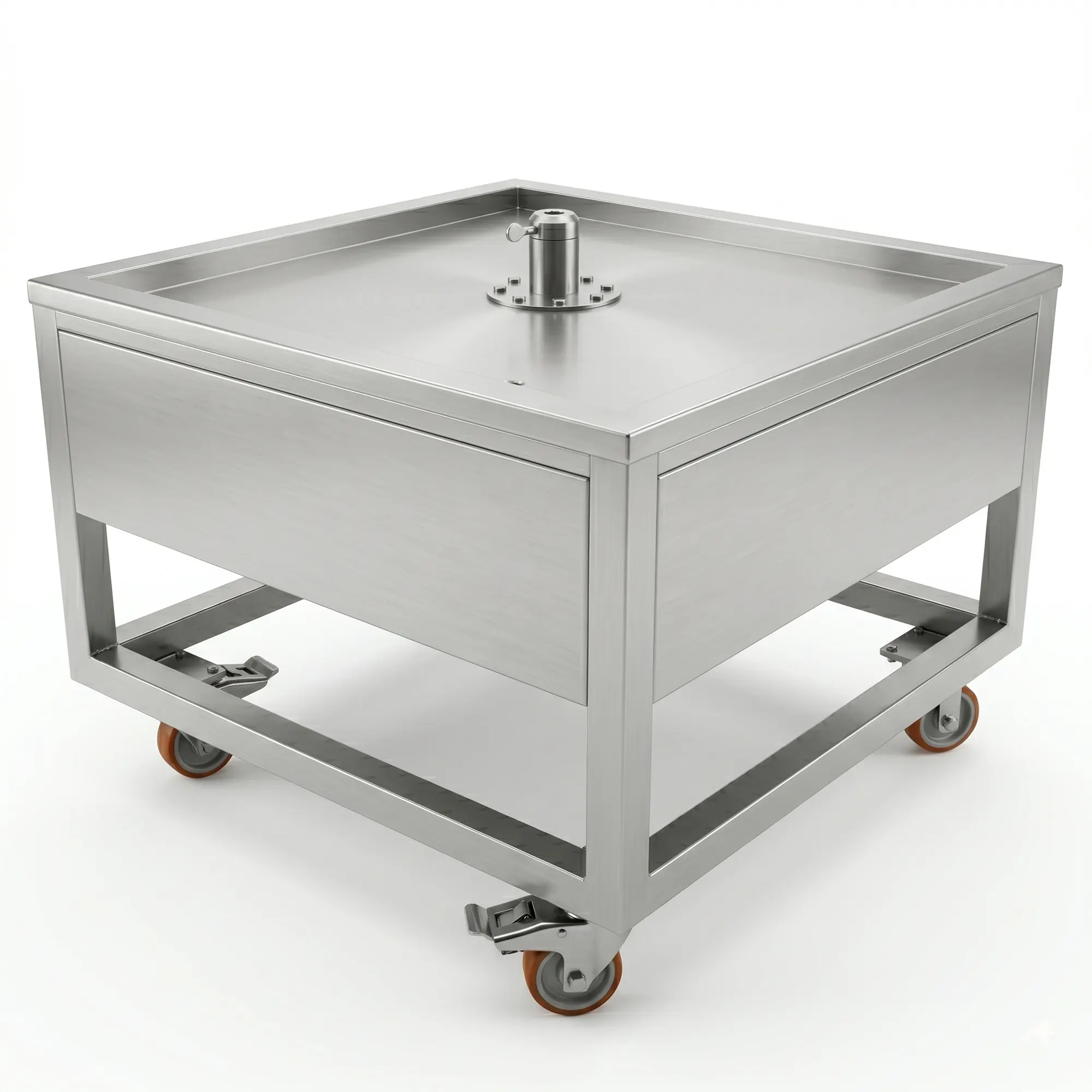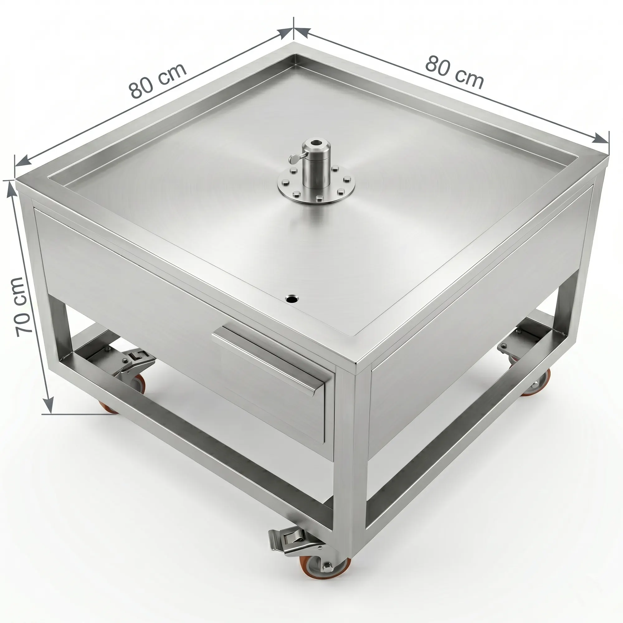 Die hohe Manövrierfähigkeit gewährleistet einen einfachen Transport, während das Bremssystem die Werkbank beim Einwickeln von Fleisch vollständig sichert.