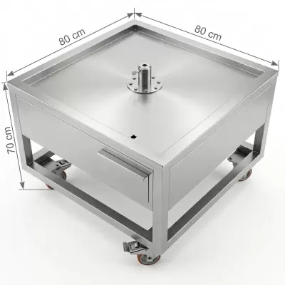 Eine der innovativsten Eigenschaften dieses Modells ist ein spezielles Schubladensystem, das die beim Zubereiten von Dönerfleisch entstehenden Flüssigkeiten und das Blut direkt in ein unteres Fach leitet. Diese Flüssigkeitsauffangschublade verhindert Bodenverschmutzung und optimiert so die Hygiene in der Küche. Mit einer maximalen Tragkraft von 200 Kilogramm sind alle Komponenten des Wagens aus erstklassigen, industrietauglichen Materialien gefertigt. Hergestellt aus Edelstahl AISI 304. Die DS-117 wird mit optionalen Edelstahlspießen in den Größen 12x12 oder 16x16 mm hergestellt und ist ein strategisches Hilfsmittel, das die Arbeitskosten bei der Fleischverarbeitung senkt und gleichzeitig Betriebssicherheit und Sauberkeit gewährleistet.