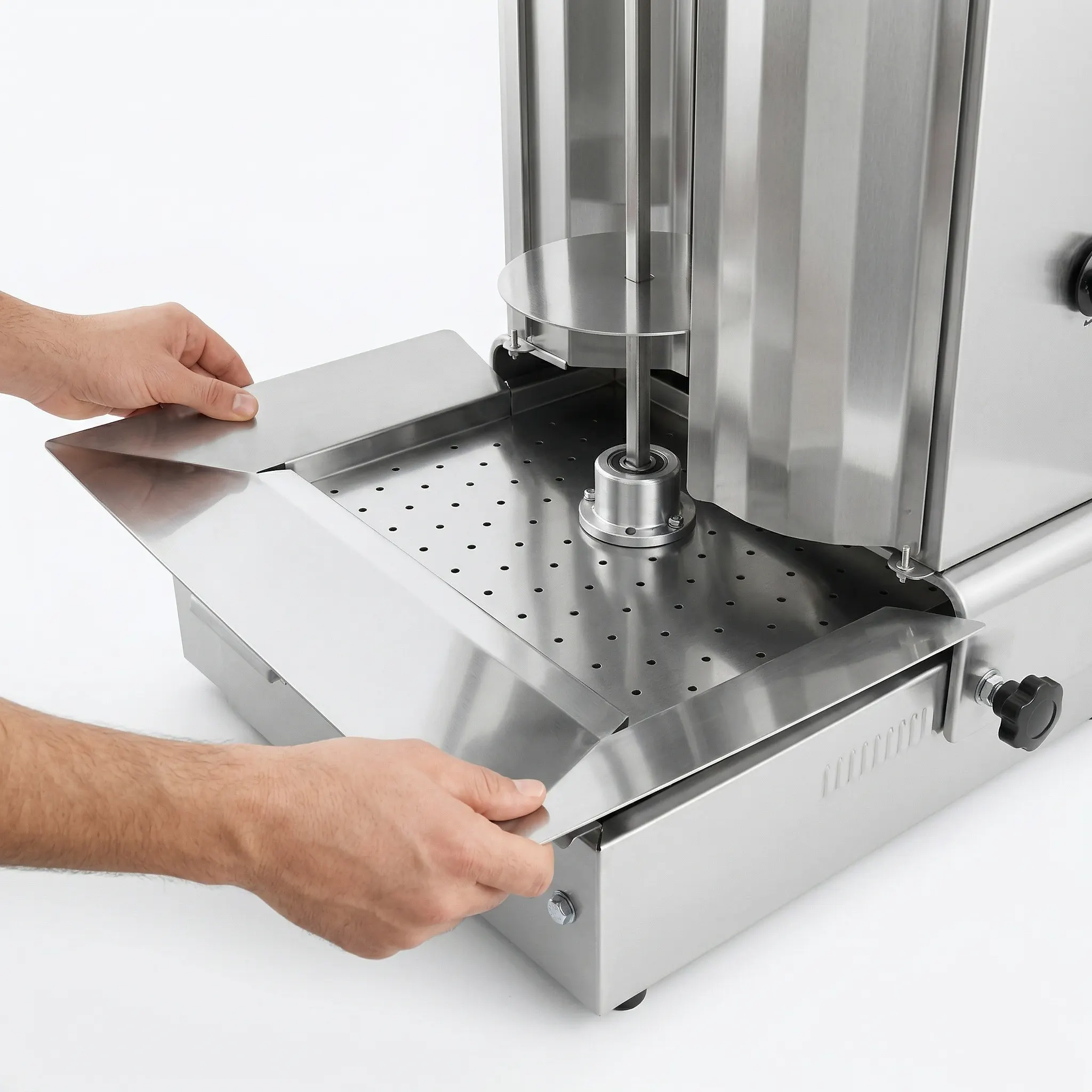 Developed specifically for industrial kitchens with Dibeksan's engineering vision. DA-10 oil tray extension adapter, doner kebab This is a professional optional part designed for intensive service periods when the standard lower oil reservoirs of stoves are insufficient in terms of capacity. Thanks to its expanded surface area, the cut doner kebab It ensures that the meat is collected cleanly and in a highly practical way, without scattering around the stove.