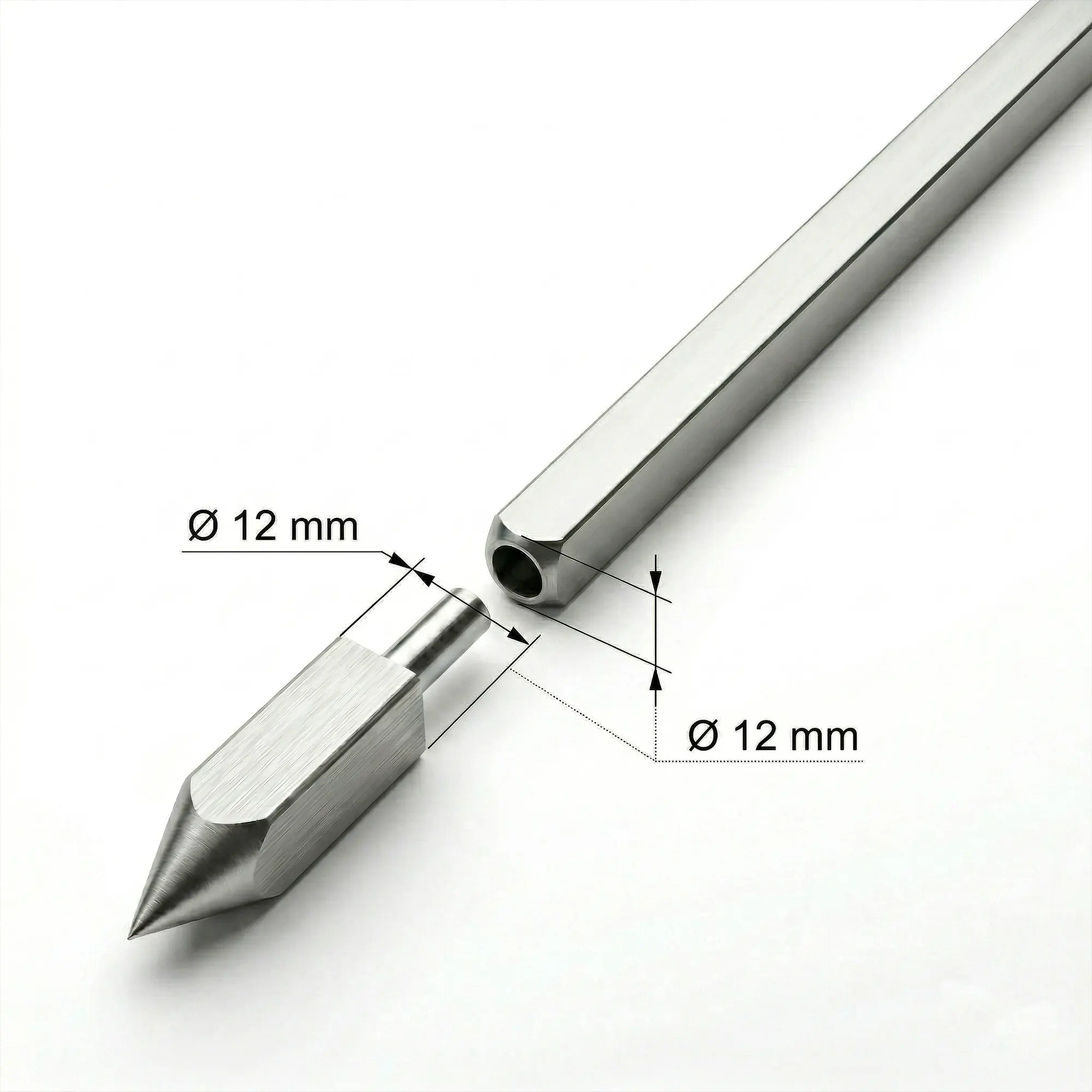 The DA-49 stainless steel pointed skewer tip, with its 12mm compatibility and AISI 304 steel construction, sharpens blunt skewers and facilitates meat threading.
