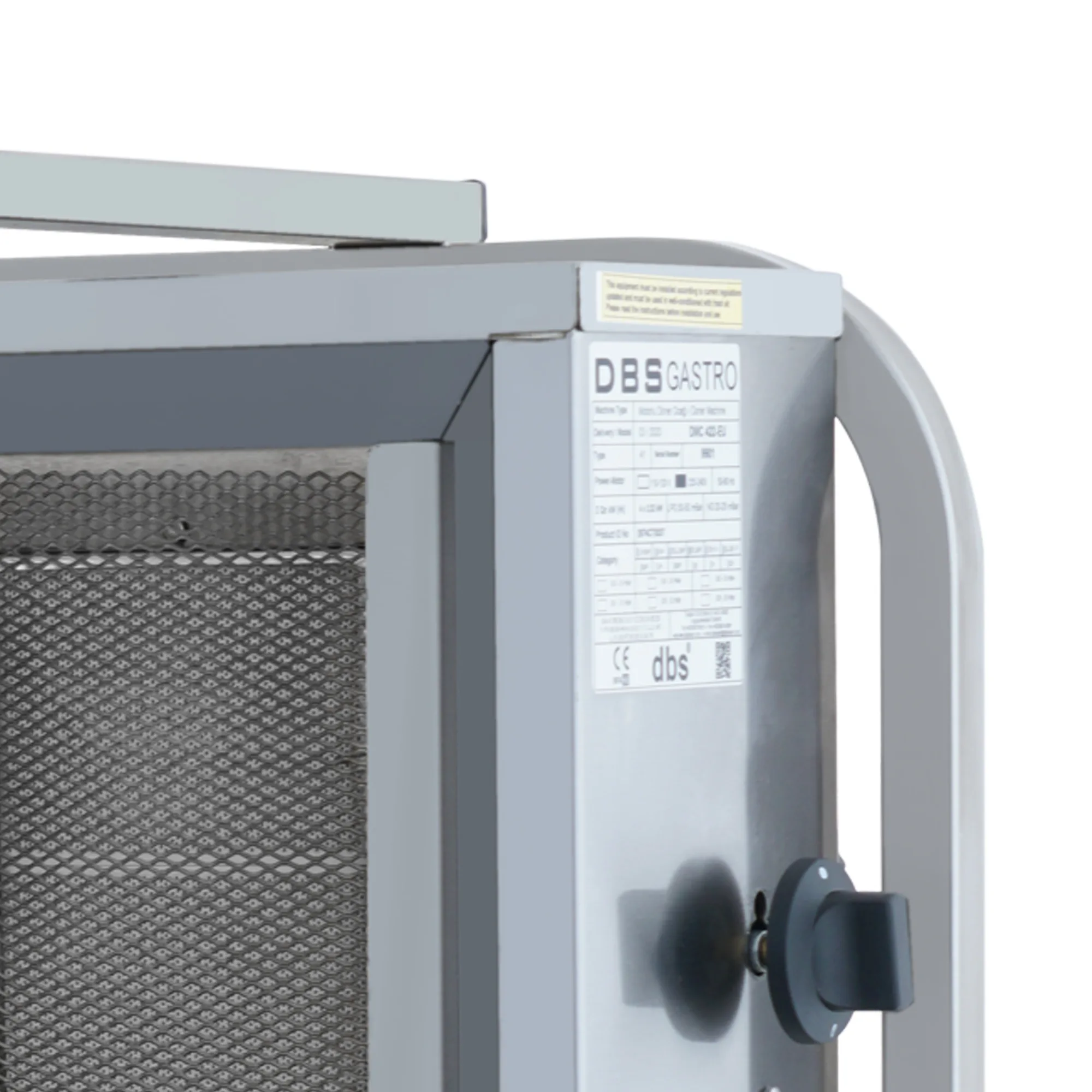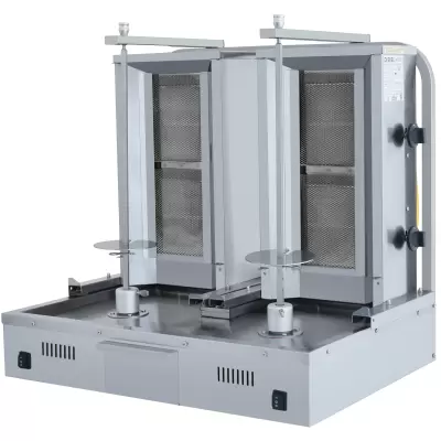 DMC 222 fully complies with global regulations on safety and hygiene standards. Commercial Shawarma Machineall surfaces that come into contact with meat comply with food regulations. AISI 304 grade stainless steel Manufactured using advanced technology, this model features an integrated flame control system with a safety valve and high-precision thermocouples that cut off the gas flow within seconds in the event of a flame failure, guaranteeing kitchen safety. A safety fuse protecting the motor against electrical leaks and a dual-directional motor capability extend the appliance's service life while increasing user comfort. Equipped with a 2-liter oil storage drawer and a perforated stainless steel strainer tray, this model is a testament to Dibeksan's experience since 1985. CE certified. With its technology, it is the most reliable investment for boutique kitchens.