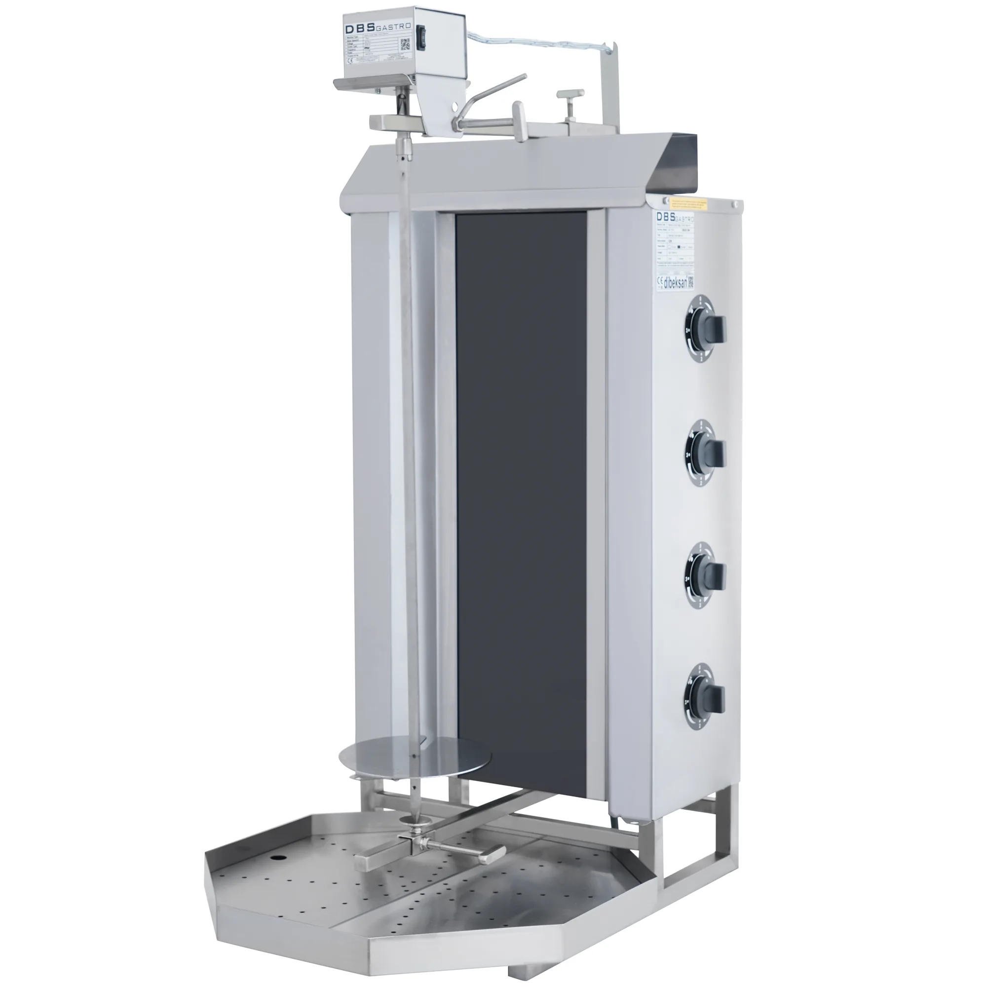 DMUE 204 meets the highest operational safety and hygiene criteria. Commercial Shawarma MachineIt is manufactured using AISI 304 grade stainless steel, compliant with food regulations, on all surfaces that come into contact with meat. It is integrated to protect against voltage fluctuations or electrical leaks that may occur in the system. protective safety fuseThe top-mounted, bidirectional motor and main circuit are secured, extending the device's lifespan. The movable stainless steel body structure (Slide System) allows the operator to practically adjust the cooking distance according to the volume of the meat, maximizing energy savings. With all these features... CE certificate DMUE 204, with its production capacity dating back to 1985 by Dibeksan, is a reliable investment instrument for global kitchens.