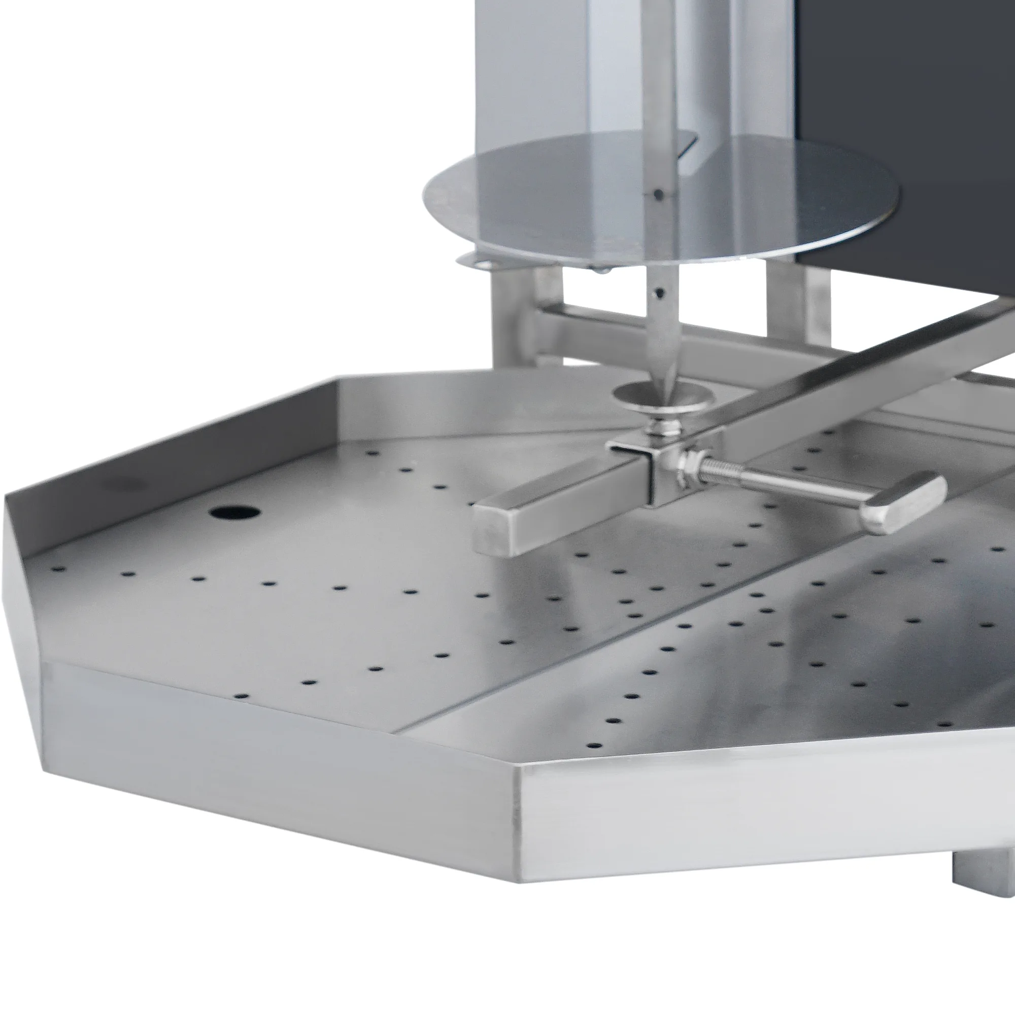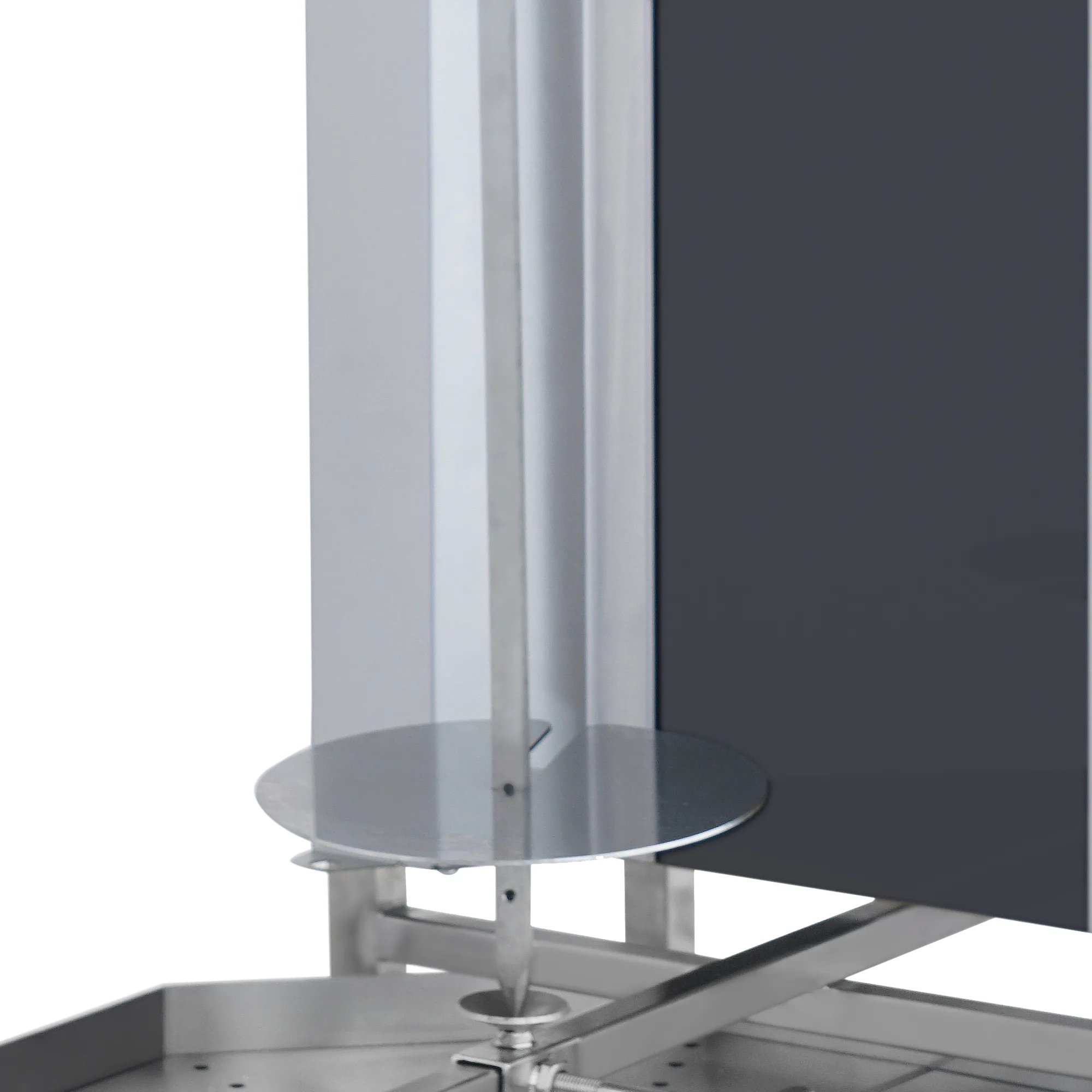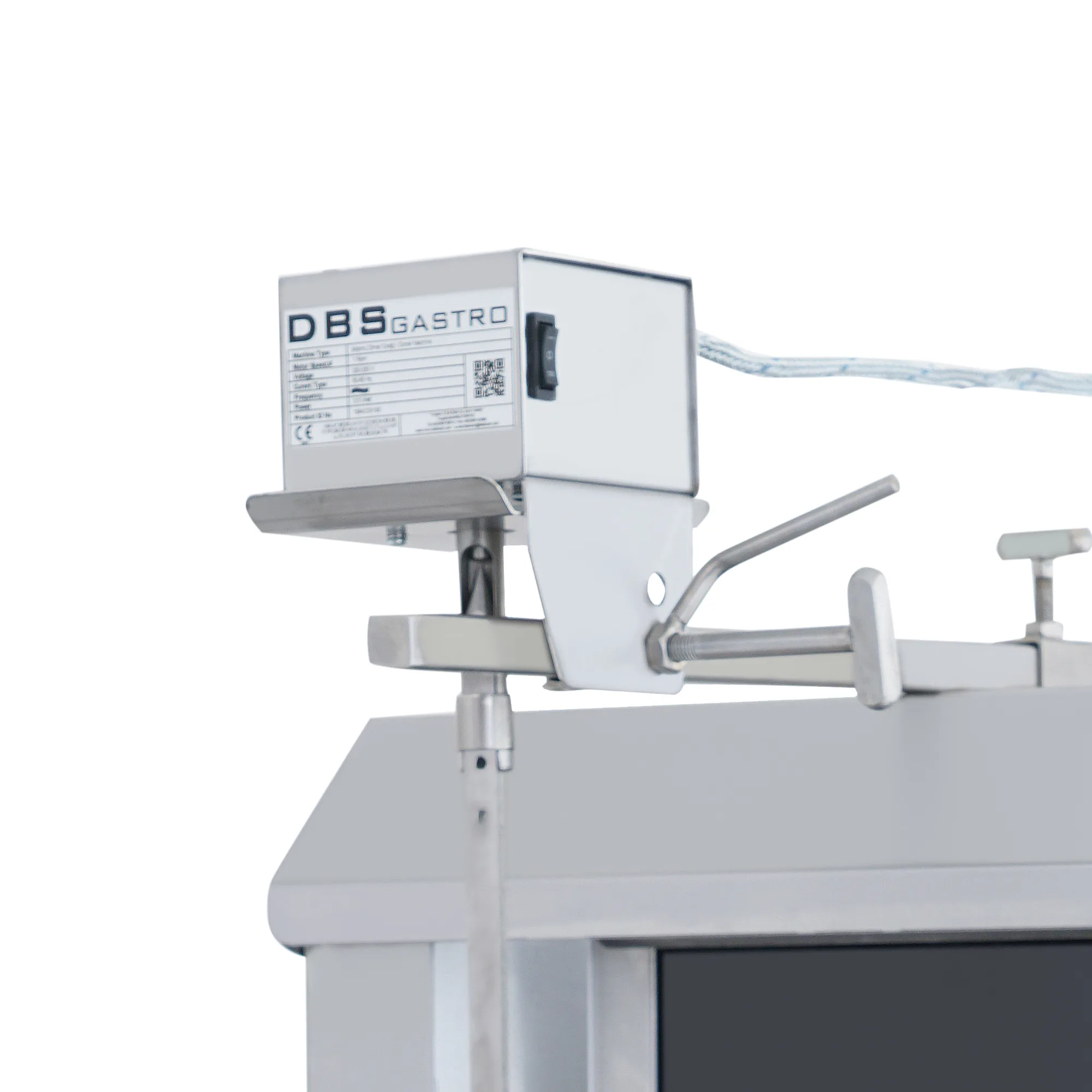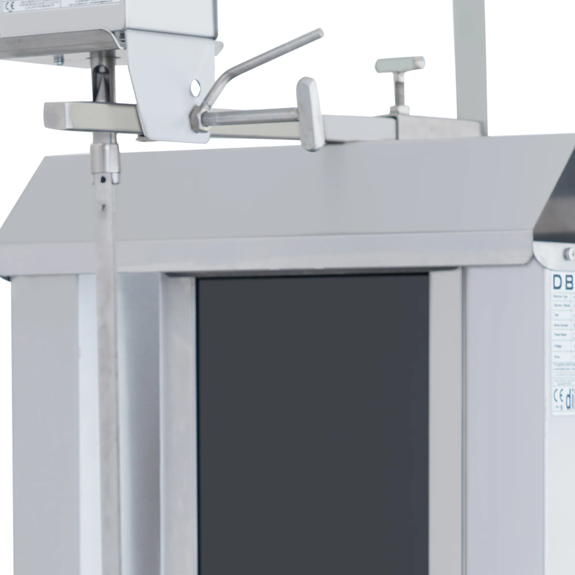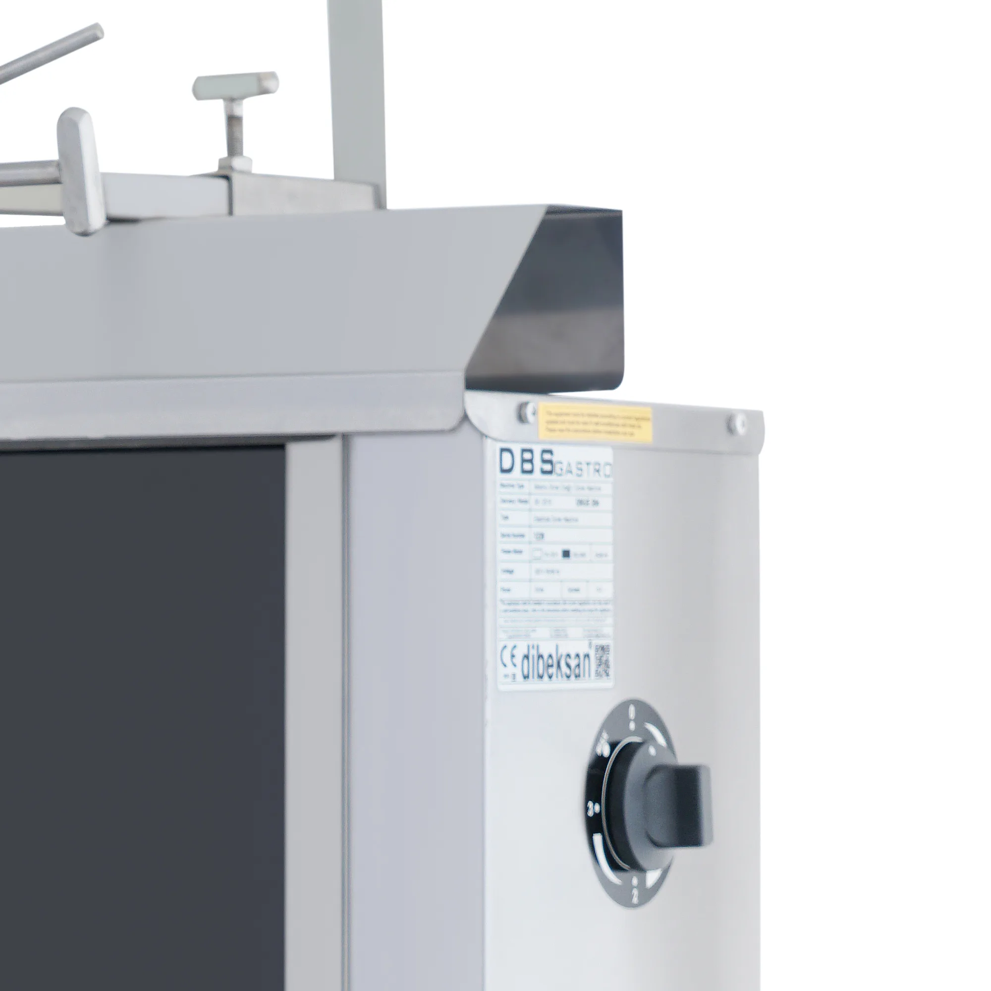 Combining the precise thermal control offered by electric heating systems with the ergonomic design of a top-mounted motor. DMUE 204 Electric Doner Kebab GrillThis is one of the most balanced models developed by Dibeksan for industrial kitchen professionals. The placement of the motor block at the top provides chefs with a wider, unobstructed, and hygienic cutting area in the lower counter space. Located on the front surface of the device...Thermal Ceramic GlassFour independent heating elements focus the heat generated by these elements towards the center of the meat, preventing fat splattering and extending the life of the heating elements while minimizing cleaning processes. High-alloy AISI 310 S Cr-Ni radiant wires maintain standard cooking performance and flavor quality even under intensive use conditions without undergoing thermal deformation.