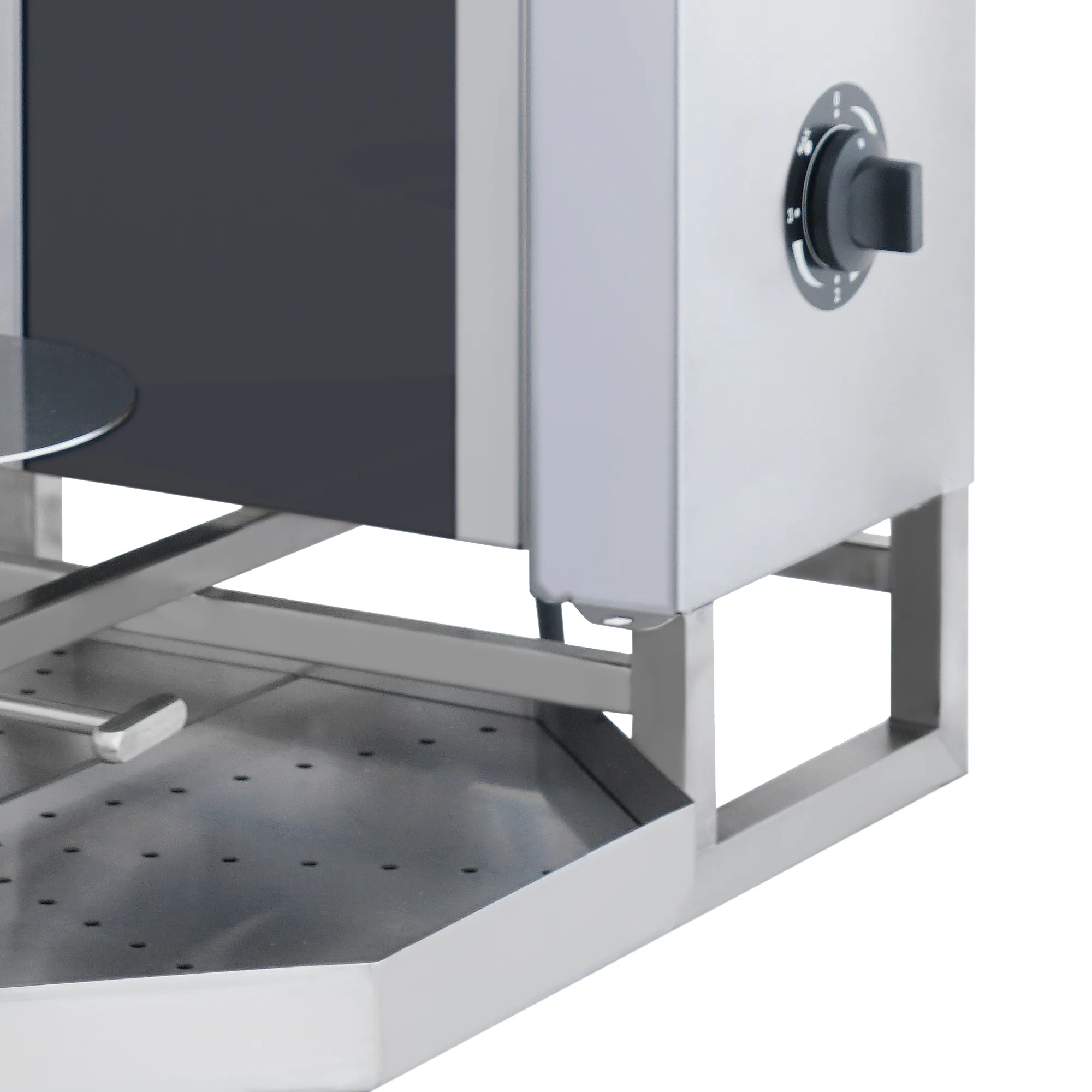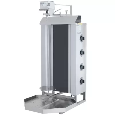 In industrial kitchens, top-mounted motor ergonomics and electrically controlled thermal precision; 50 kg doner kebab cooking capacity, ceramic thermal glass surface and 4 independent heating elements provide reliable power for medium-sized operations.