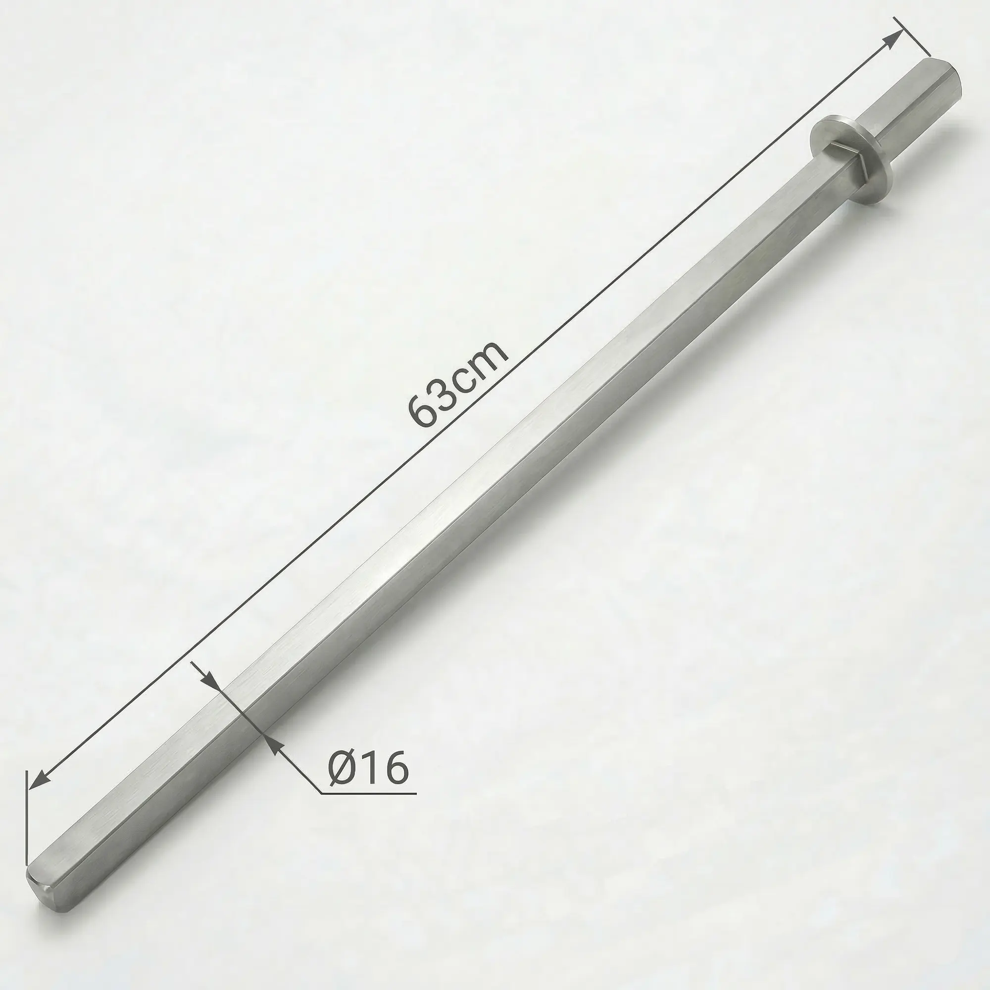 Prepared with Dibeksan's engineering vision. YM-1237 Doner Kebab The skewer is designed for businesses working with heavy meat sets on medium-sized machines. Despite its 63 cm length, its Ø16 mm thickness makes it suitable for heavy-duty use. doner kebab It doesn't flex even under blocks. This equipment, also known as a "wrapping skewer" in the industry, ensures that the meat is skewered and placed stably into the machine.