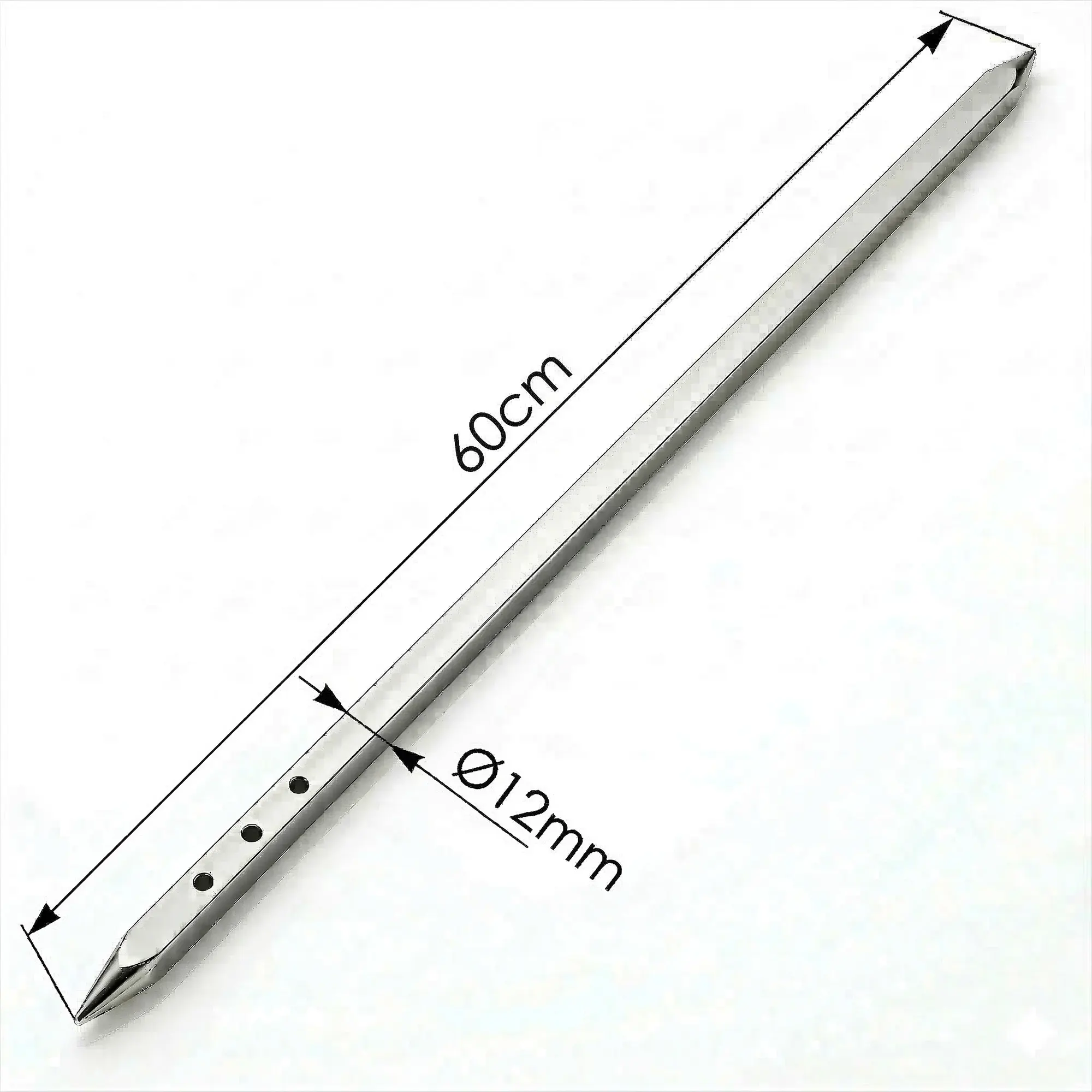 Developed by Dibeksan for the European (EU) segment in accordance with export standards. YM-1278 doner kebab The detachable skewer offers high operational efficiency and durability. With a length of 60 cm and a diameter of Ø12 mm, it is perfectly compatible with the compact kebab ovens commonly used in European kitchens. This professional equipment, also preferred in the industry as a "wrapping skewer," doner kebab This ensures the meat remains balanced and stable during cooking by skewering it.