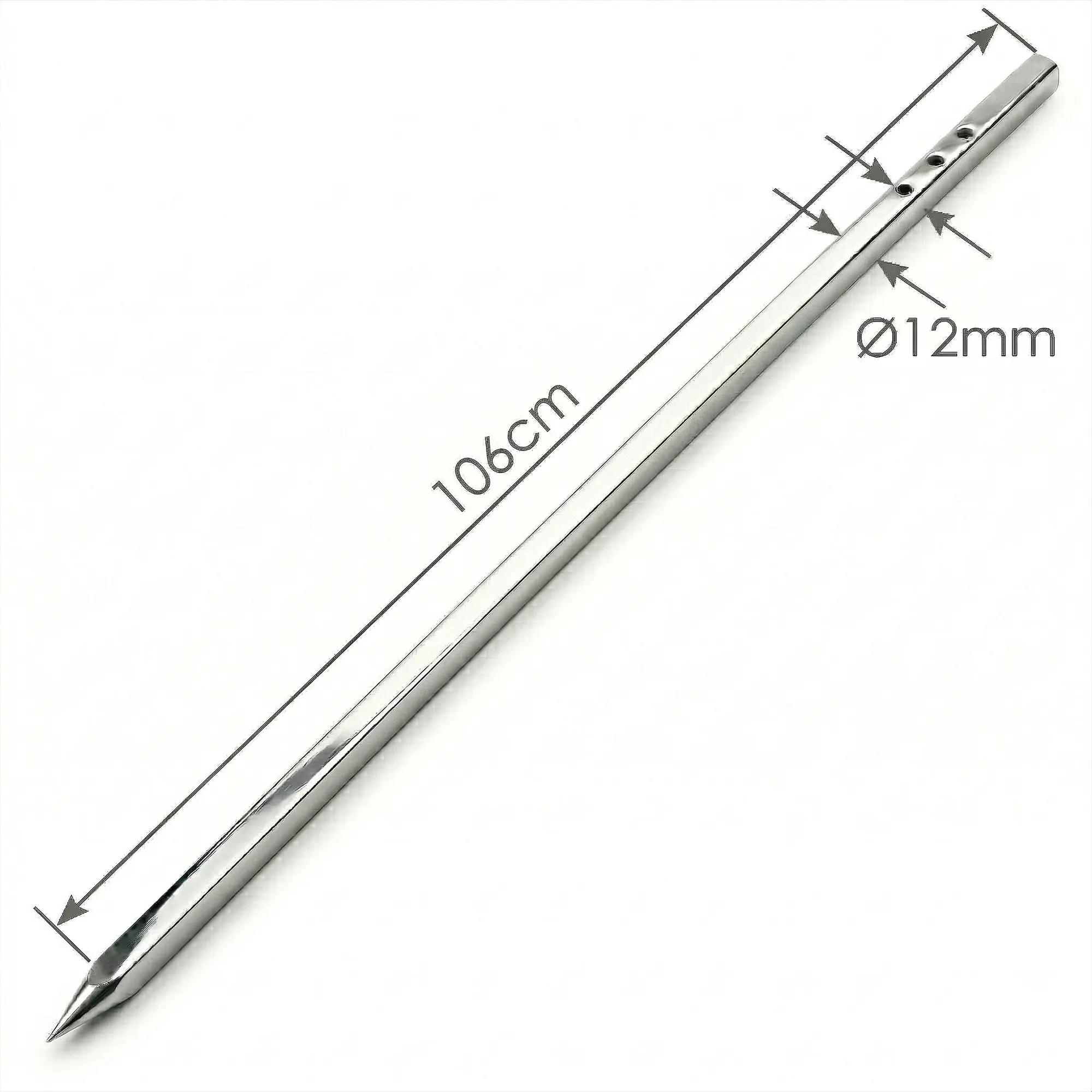 YM-354 Doner Kebab Skewer (Ø12/106cm). Professional doner kebab preparation skewer with AISI 304 stainless steel construction and 3 adjustment holes.