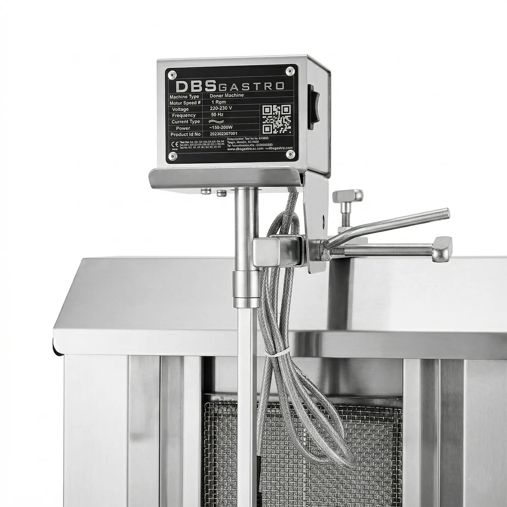 In the fast-paced environment of industrial kitchens, kebab grill The uninterrupted operation of the systems is the most critical element. Developed specifically for top-mounted motor devices with Dibeksan engineering. YM-362 DBS top engineDespite being located directly above the heat source, it exhibits exceptional resistance to high temperatures. Due to the laws of physics, its internal windings and external insulation are specially insulated to prevent it from being affected by intense heat waves rising upwards from radiant sources. Operating at 240V and 1.3 RPM (C=0.68µf), this equipment smoothly rotates even heavy meat loads. Its bidirectional operation capability maximizes user comfort, offering our professionals the flexibility to cut the meat in any direction they desire.