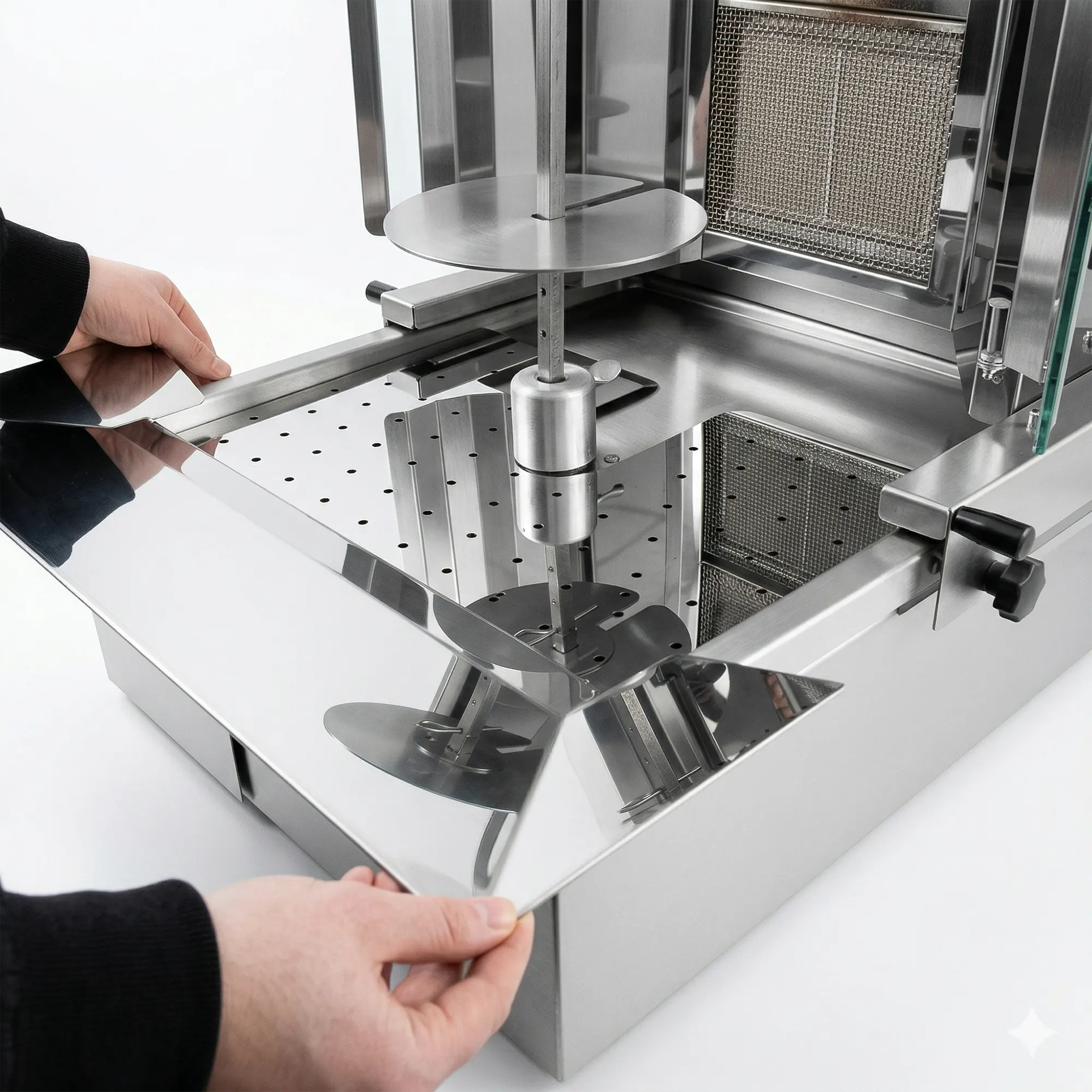 Desarrollado específicamente para cocinas industriales, con la visión de ingeniería de Dibeksan. Adaptador de extensión de bandeja de aceite tipo ancho DA-19, kebab doner Se trata de una pieza opcional profesional diseñada para periodos de uso intensivo donde los depósitos de aceite inferiores estándar de las estufas resultan insuficientes en volumen. Gracias a su mayor superficie, la superficie de corte... kebab doner Garantiza que la carne se recoja de forma segura y muy práctica, sin que se esparza por la estufa.