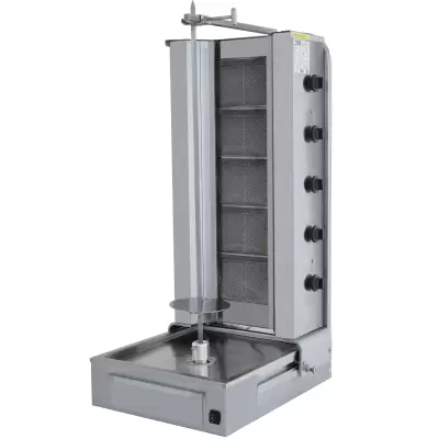 El DMAG 105 es inflexible en sus criterios de seguridad operativa. Máquina De Shawarma ComercialEstá equipado con un dispositivo de control de llama con válvula de seguridad integrada y termopares de alta precisión. Este sistema garantiza la seguridad en la cocina al cortar automáticamente el flujo de gas en segundos en caso de que falle la llama, lo que asegura un uso prolongado. Un fusible de seguridad protege el motor contra fugas eléctricas, y la capacidad de giro bidireccional del motor brinda a los chefs la flexibilidad de controlar la dirección de rotación de la carne. Cumpliendo con los estándares de higiene gracias a un amplio cajón para grasa de 2 litros y una bandeja coladora perforada de acero inoxidable, este sistema... Certificado CE. Este modelo promete una eficiencia sostenible y una asociación de soluciones confiable para los inversores en cocinas profesionales de Dibeksan en el mercado global.