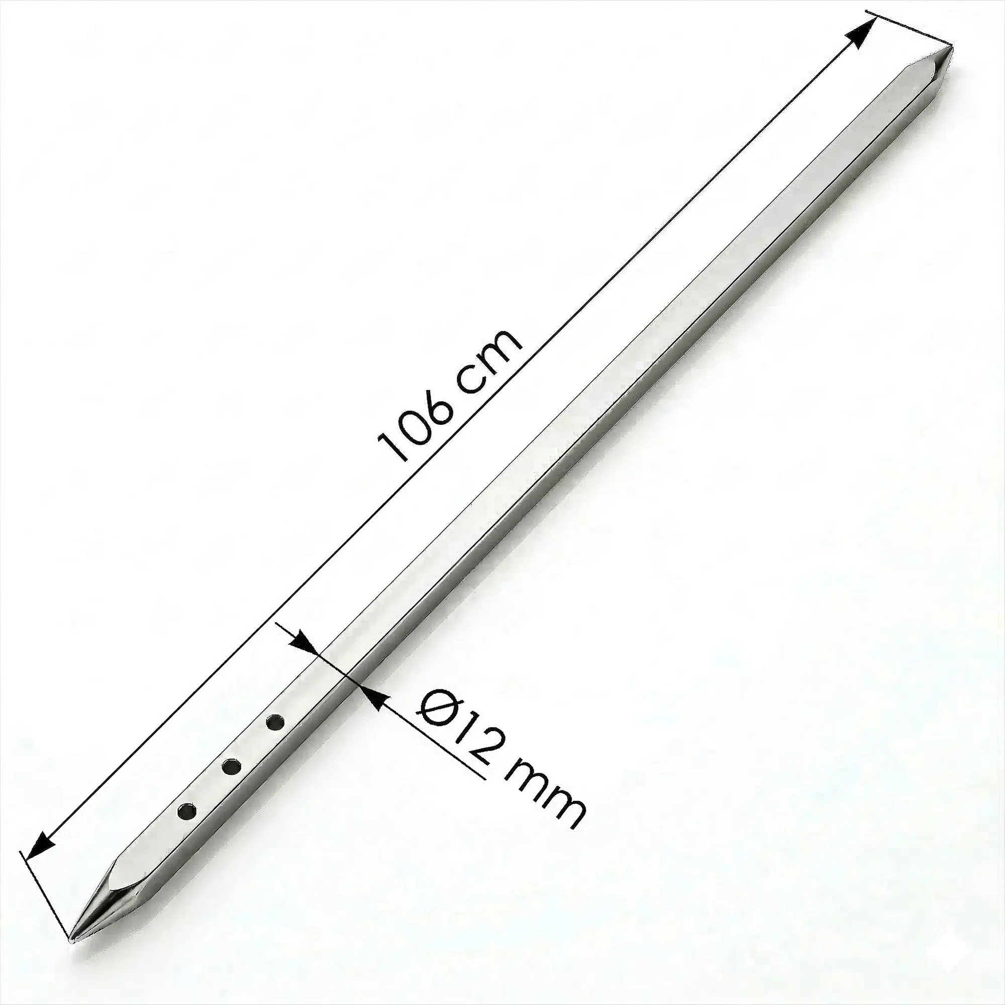 Spiedino per döner kebab YM-1243 (Ø12/106cm). Uno spiedino professionale per avvolgere il döner kebab, realizzato in acciaio inox AISI 304 e con lunghezza conforme agli standard UE.