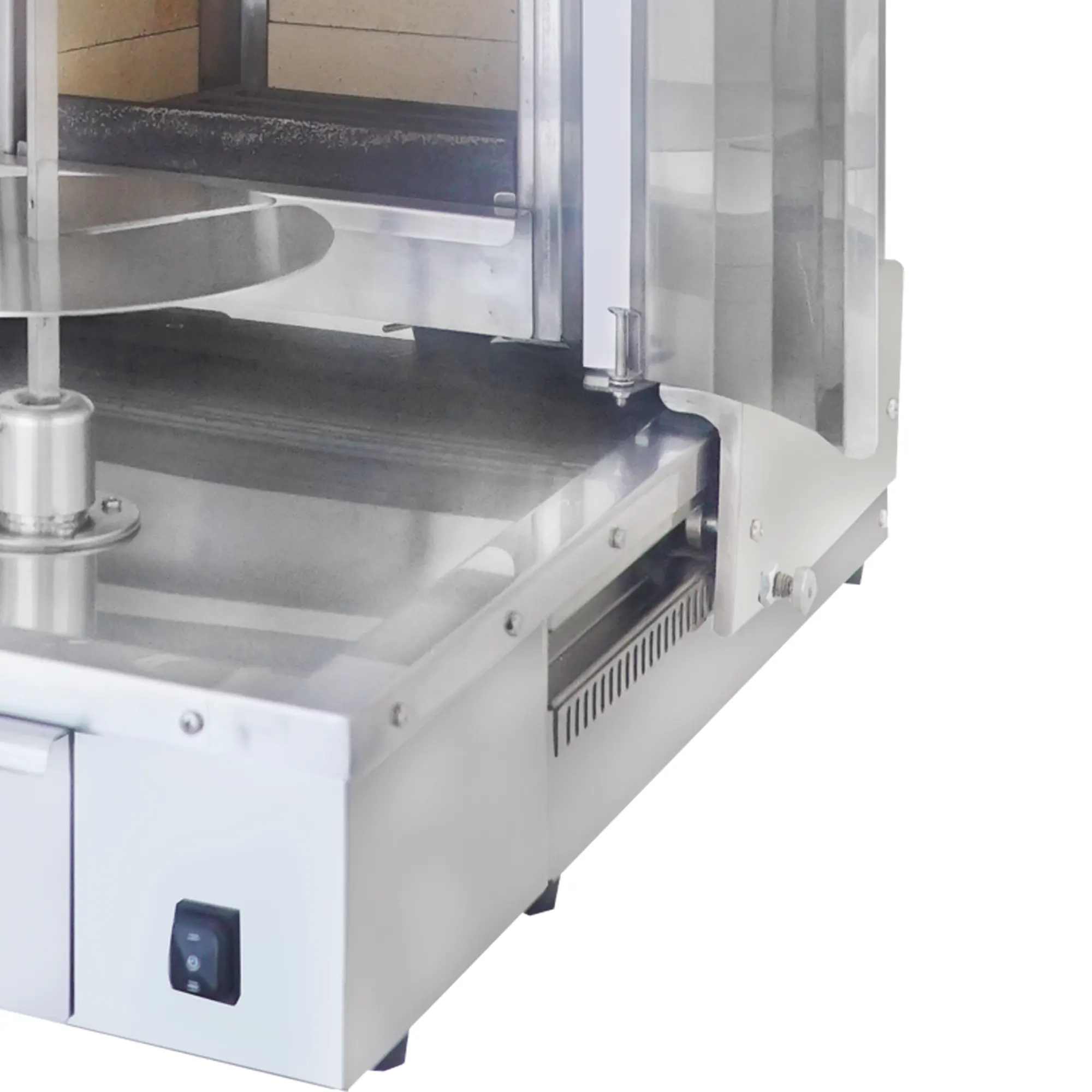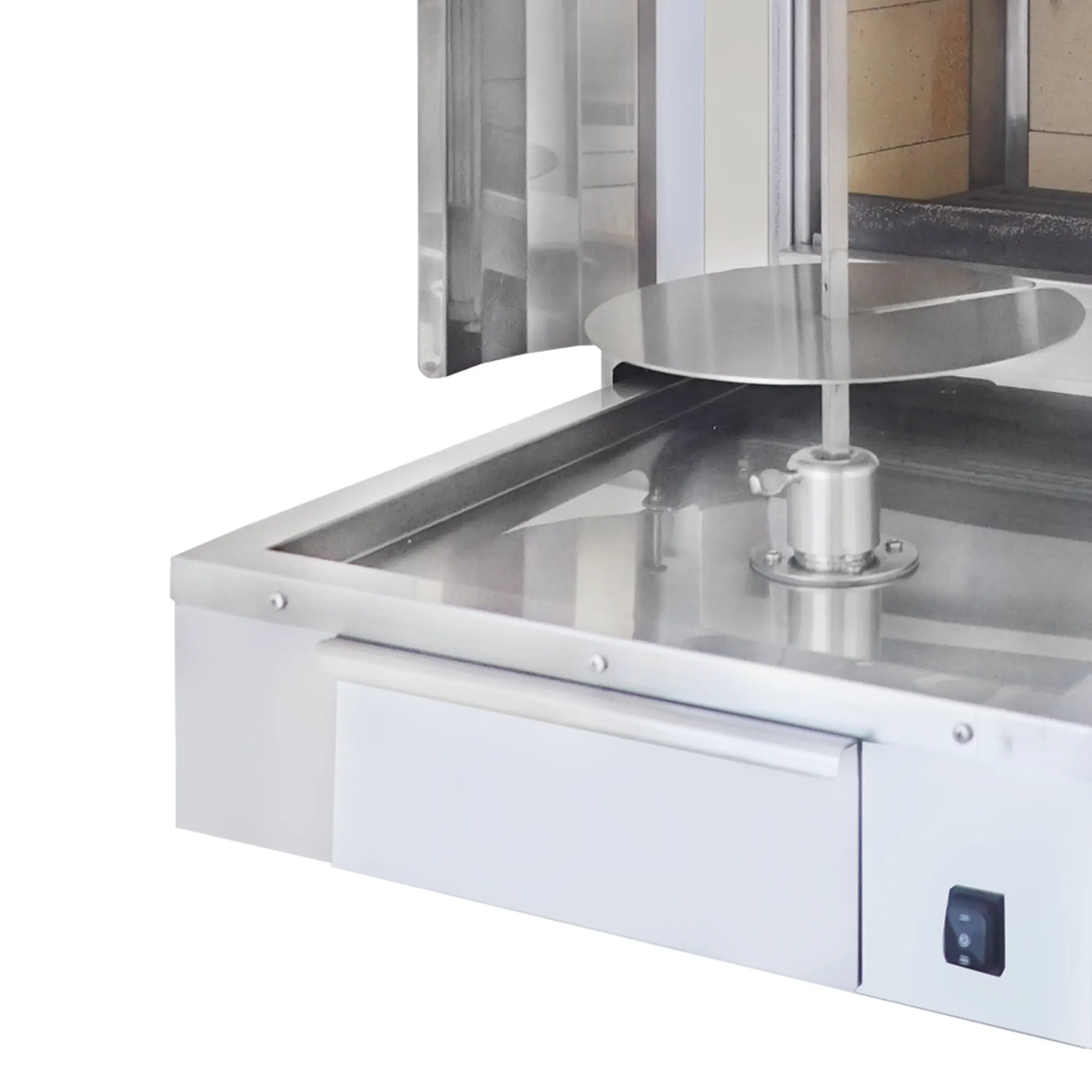 De geperforeerde zeef in het systeem voorkomt dat overtollig vet in contact komt met het vlees en voert het af naar een vetopvangbak van 2 liter. Dit zorgt voor een gezonder kookproces zonder afbreuk te doen aan het aroma van het houtvuur. Geproduceerd met onze ervaring die teruggaat tot 1985... CE-gecertificeerd. Het model biedt een naadloze, duurzame en hygiënische oplossing voor distributeurs en professionele bedrijven die zich richten op authentieke smaken op de wereldmarkt. industriële döner kebab machine Het belooft een oplossing.
