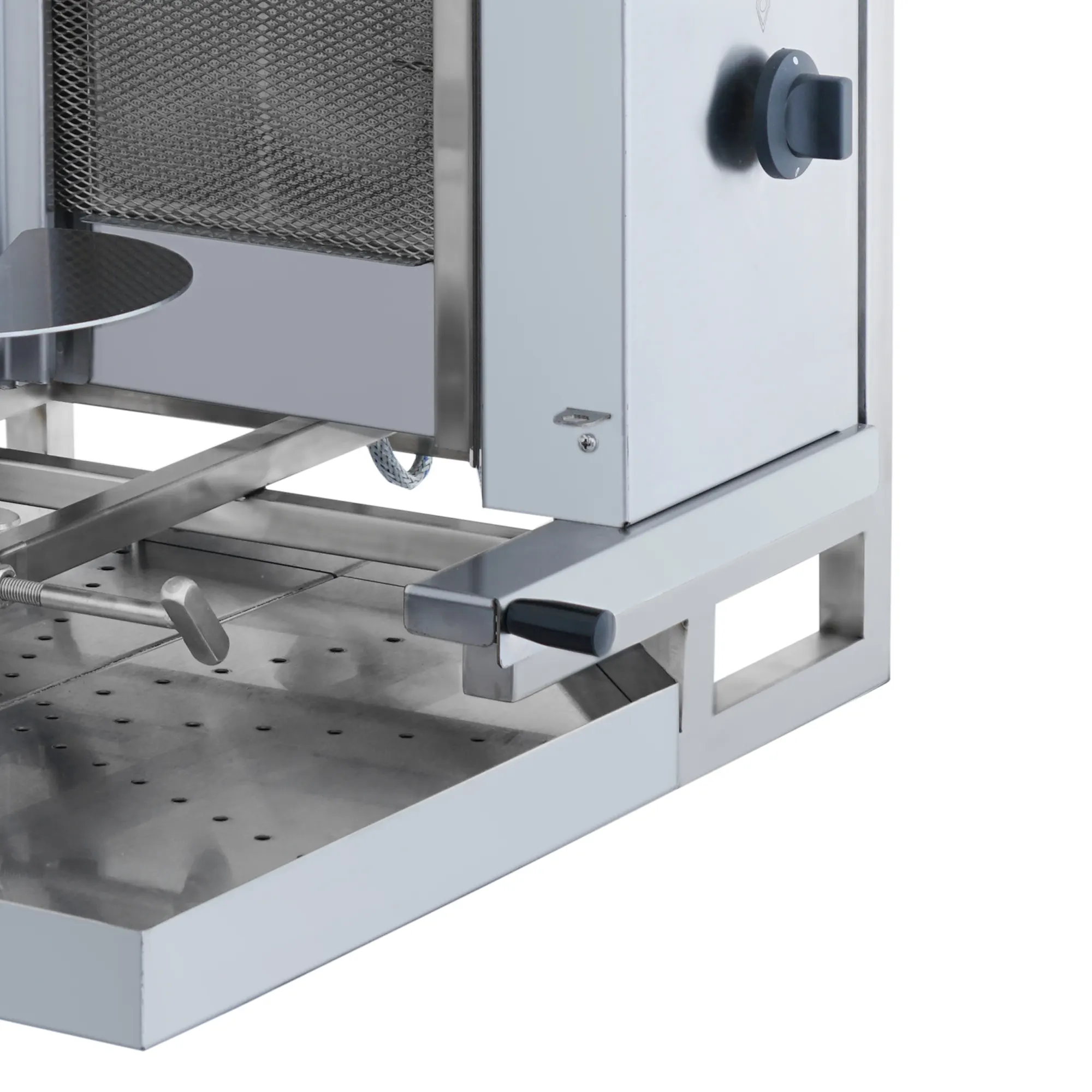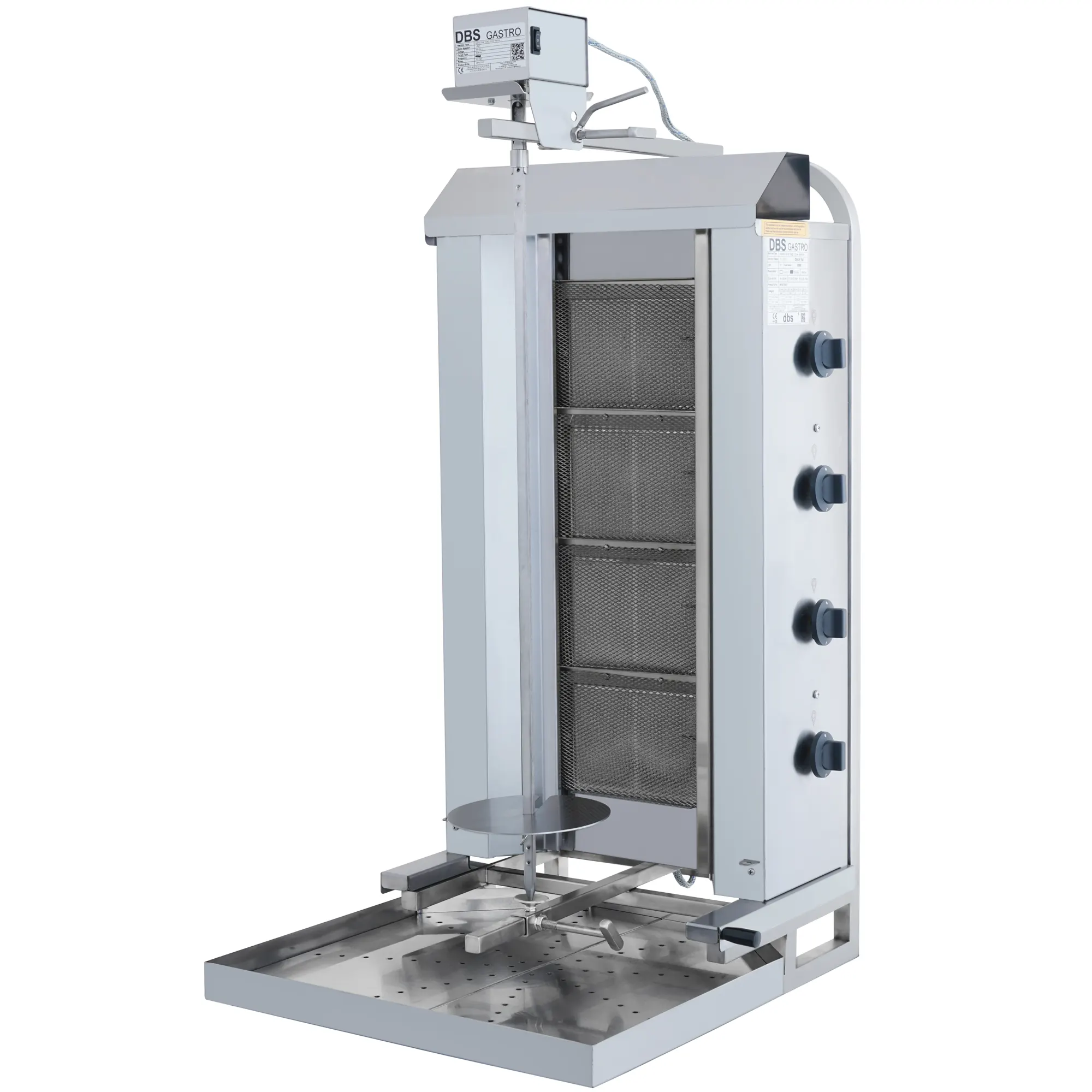 DMUK 104 heeft een compromisloze structuur als het gaat om hygiëne- en veiligheidsnormen. Professionele Shawarma MachineAlle oppervlakken die in contact komen met vlees moeten voldoen aan de voedselveiligheidsvoorschriften. Roestvrij staal van AISI 304-kwaliteit Vervaardigd met hoogwaardige materialen. Om maximale bedrijfsveiligheid te garanderen, zorgt een geïntegreerd vlamregelsysteem met een veiligheidsventiel en uiterst nauwkeurige thermokoppels ervoor dat de gastoevoer binnen enkele seconden automatisch wordt afgesloten in geval van vlamuitval. Dankzij de motor die in beide richtingen kan draaien, kan de draairichting van het vlees (rechts of links) eenvoudig worden aangepast aan de voorkeur van de gebruiker. De grote vetopvangbak van 2 liter en de geperforeerde zeef zorgen voor maximale hygiëne in uw keuken. Dit sluit aan bij Dibeksans streven naar kwaliteit, dat al sinds 1985 voortduurt. CE-gecertificeerd. Dit model is uitgerust met geavanceerde productietechnologie en vormt daarmee een economische én duurzame investering voor culinaire professionals wereldwijd.