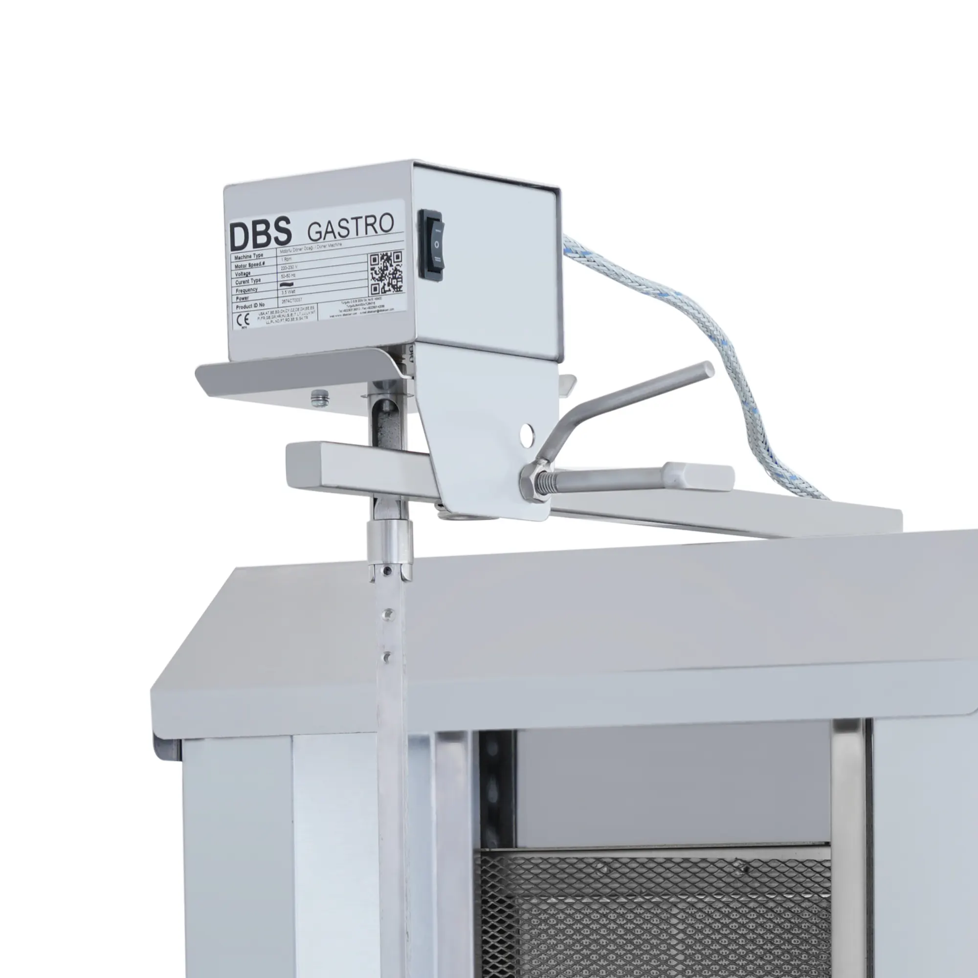 Ontwikkeld om te voldoen aan de eisen op het gebied van ruimtebesparing en duurzaamheid van professionele döner kebabkeukens. DMUK 104 Döner Kebab OvenDit is een uniek model dat de expertise van Dibeksan op het gebied van industriële engineering weerspiegelt. Met in totaal 4 onafhankelijk regelbare stralingsverwarmers gaart dit apparaat perfect stukken vlees van 50 kg tot in de kern, waarbij snelheid en een constante smaak hand in hand gaan. Het grootste voordeel van dit model is... Motorontwerp met bovenmontageDe motor is geïsoleerd van afgewerkte oliën en de opstijgende warmte die tijdens het koken ontstaat, waardoor mechanische slijtage tot een minimum wordt beperkt. Deze constructie verlengt de levensduur van de motor en zorgt voor een groter en onbelemmerd werkoppervlak op de basis, wat het gebruiksgemak voor koks vergroot. Het millimeterprecieze schuifsysteem, waarmee de beweegbare roestvrijstalen behuizing naar voren en naar achteren kan worden bewogen, optimaliseert de kookafstand afhankelijk van de grootte van het vlees. Dit bespaart energie en voorkomt dat het vlees uitdroogt, waardoor het sappig blijft.
