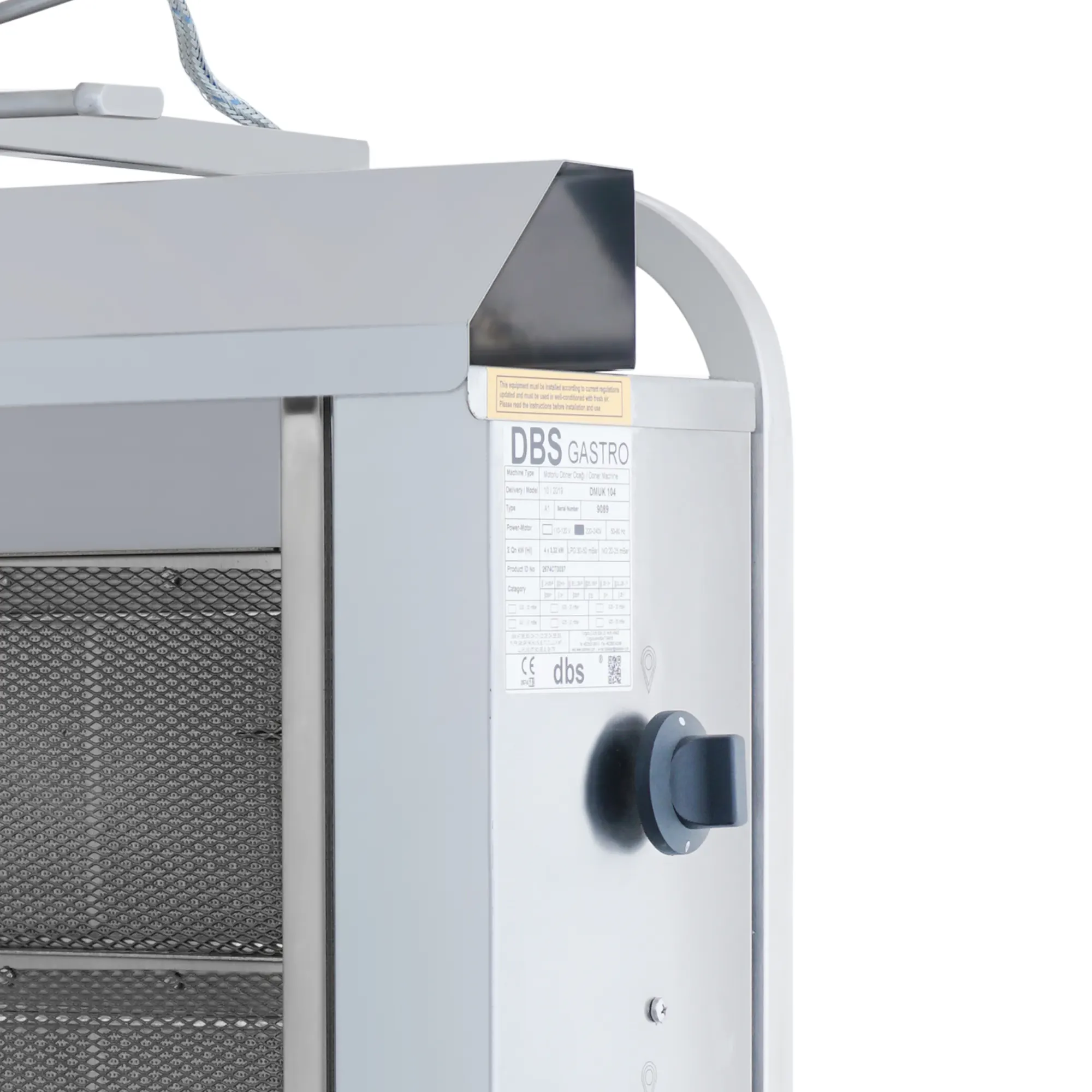 Met een dagelijkse verwerkingscapaciteit van 50 kg vlees (döner kebab) biedt de DMUK 104, dankzij de 4 onafhankelijke stralingsverwarmers, de ideale thermische balans voor middelgrote restaurants en buffetten.