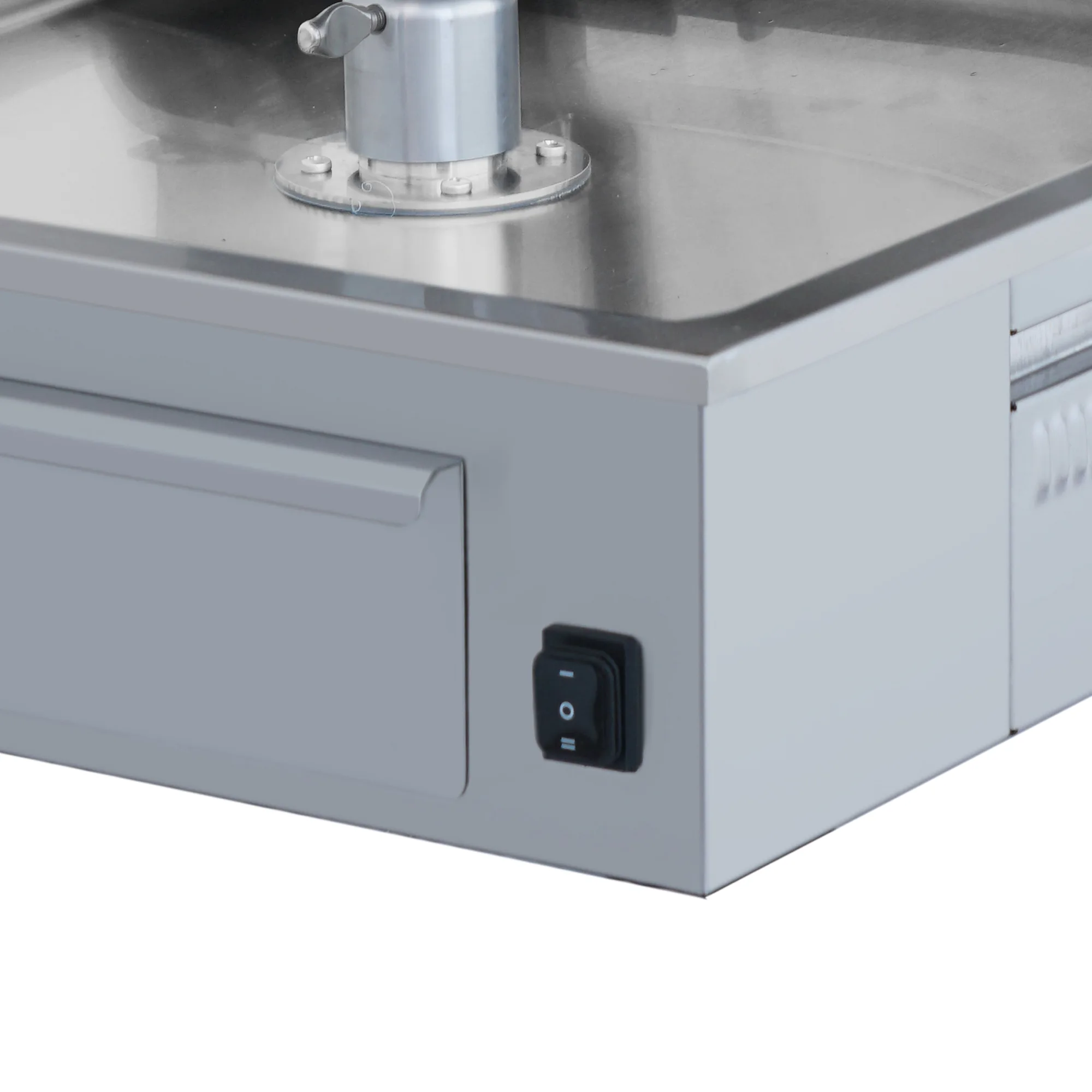 DMAG 103 charakteryzuje się bezkompromisową konstrukcją pod względem kryteriów bezpieczeństwa operacyjnego. Profesjonalna Maszyna Do ShawarmyWyposażony w termopary z zaworem bezpieczeństwa i system kontroli płomienia, zapewnia maksymalne bezpieczeństwo w kuchni. System ten, który automatycznie odcina dopływ gazu w ciągu kilku sekund w przypadku ewentualnego zgaśnięcia płomienia, wpisuje się w globalną wizję bezpieczeństwa żywności firmy Dibeksan. Zastosowanie stali nierdzewnej AISI 304 dopuszczonej do kontaktu z żywnością na wszystkich powierzchniach mających kontakt z mięsem oraz stali nierdzewnej AISI 430 na panelach zewnętrznych gwarantuje długotrwałe i higieniczne użytkowanie. Dzięki dwukierunkowemu silnikowi, dużej szufladzie na tłuszcz oraz łatwo wyjmowanemu systemowi tarcz szczelinowych, urządzenie oferuje doskonałą wydajność. Certyfikat CE. Model ten stanowi zrównoważoną inwestycję w produktywność dla profesjonalnych inwestorów w branży kuchennej na rynku międzynarodowym.