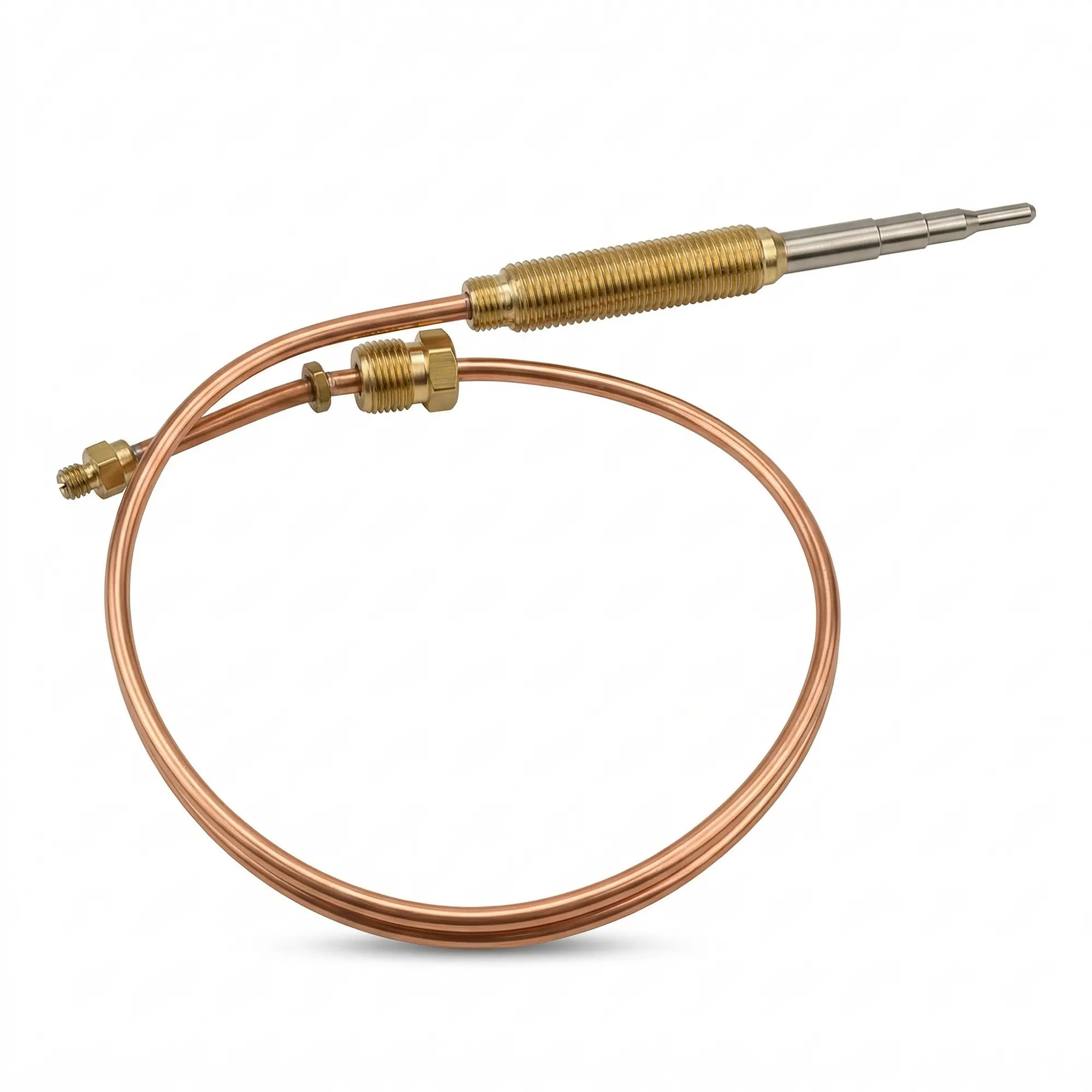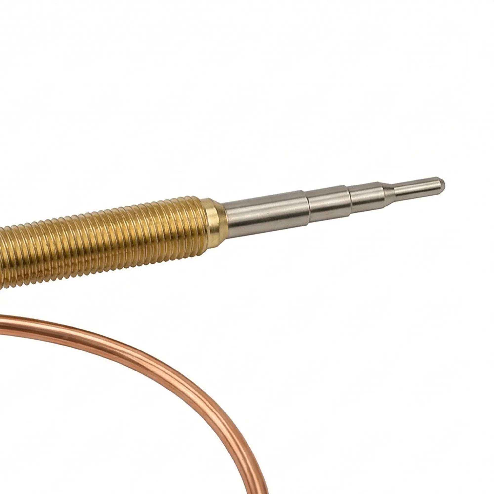 Oferowane zgodnie ze standardami inżynieryjnymi Dibeksan. Termopara HM-262 (nr 6)profesjonalny grill kebabowy Ten czujnik bezpieczeństwa jest niezbędnym elementem architektury bezpieczeństwa instalacji gazowych. Wykonany specjalnie w formie miedzianej rurki, idealnie integruje się z systemem zaworów gazowych za pomocą gwintu przyłączeniowego metrycznego 8 (M8). Dzięki doskonałej zdolności miedzi do przenoszenia ciepła, natychmiast wykrywa nawet najmniejsze zmiany temperatury w płomieniu promiennika. Możliwość indywidualnego podłączenia do każdego z promienników gwarantuje, że automatycznie odcina dopływ gazu tylko do płomienia, którego płomień zgasł, gwarantując bezpieczną pracę pozostałych sekcji.