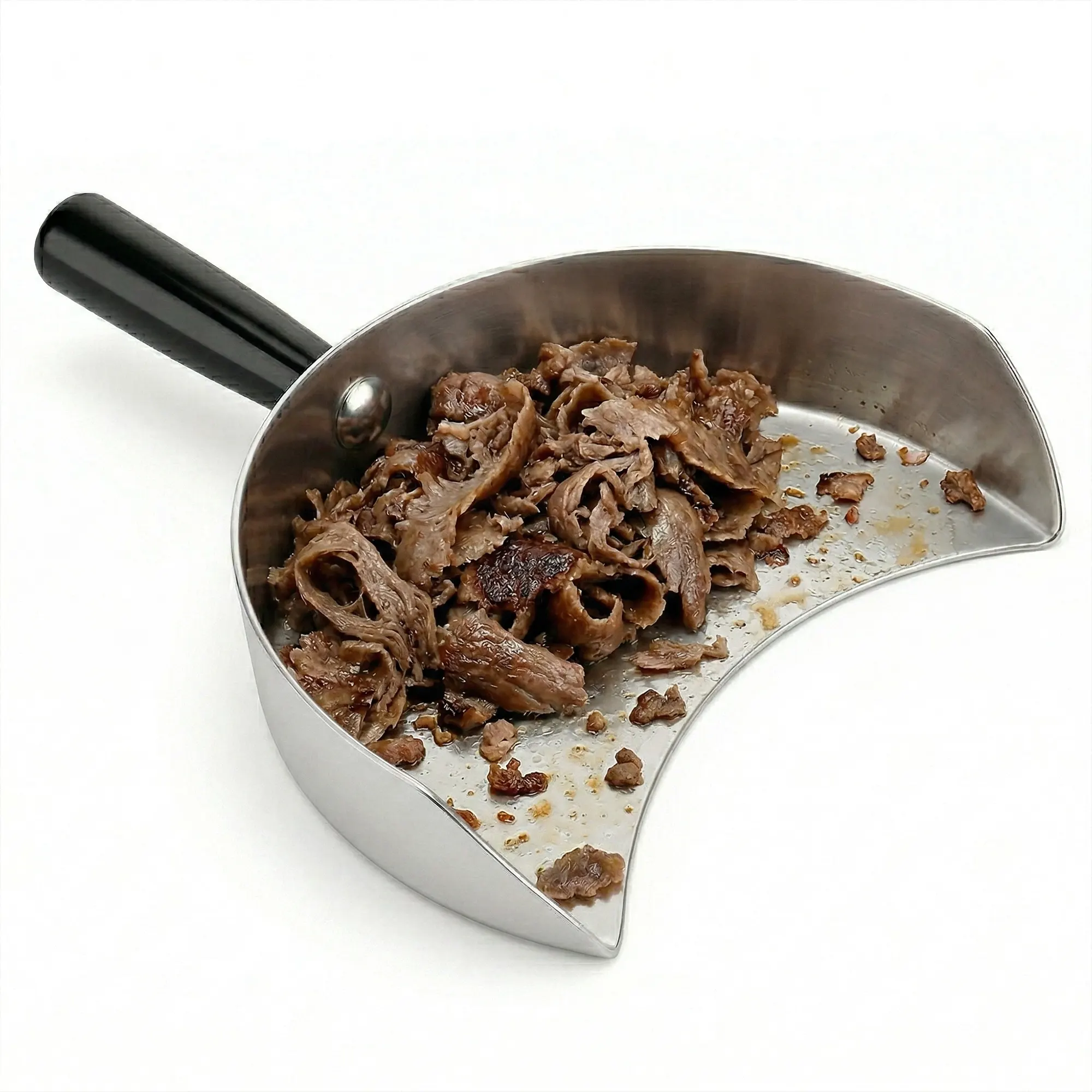 Алюминиевая лопаточка для донер-кебаба DA-23Этот продукт разработан для профессиональных кухонь, чтобы оптимизировать процессы нарезки и подачи мяса на гриле для донер-кебаба. Широкое отверстие диаметром 26 см позволяет безопасно собирать большое количество мяса для донер-кебаба за один раз. Сочетая естественную легкость алюминия с высокой прочностью, конструкция корпуса обеспечивает общий вес изделия на уровне 348 грамм, защищая здоровье запястья оператора при длительном использовании и максимально повышая эффективность работы.