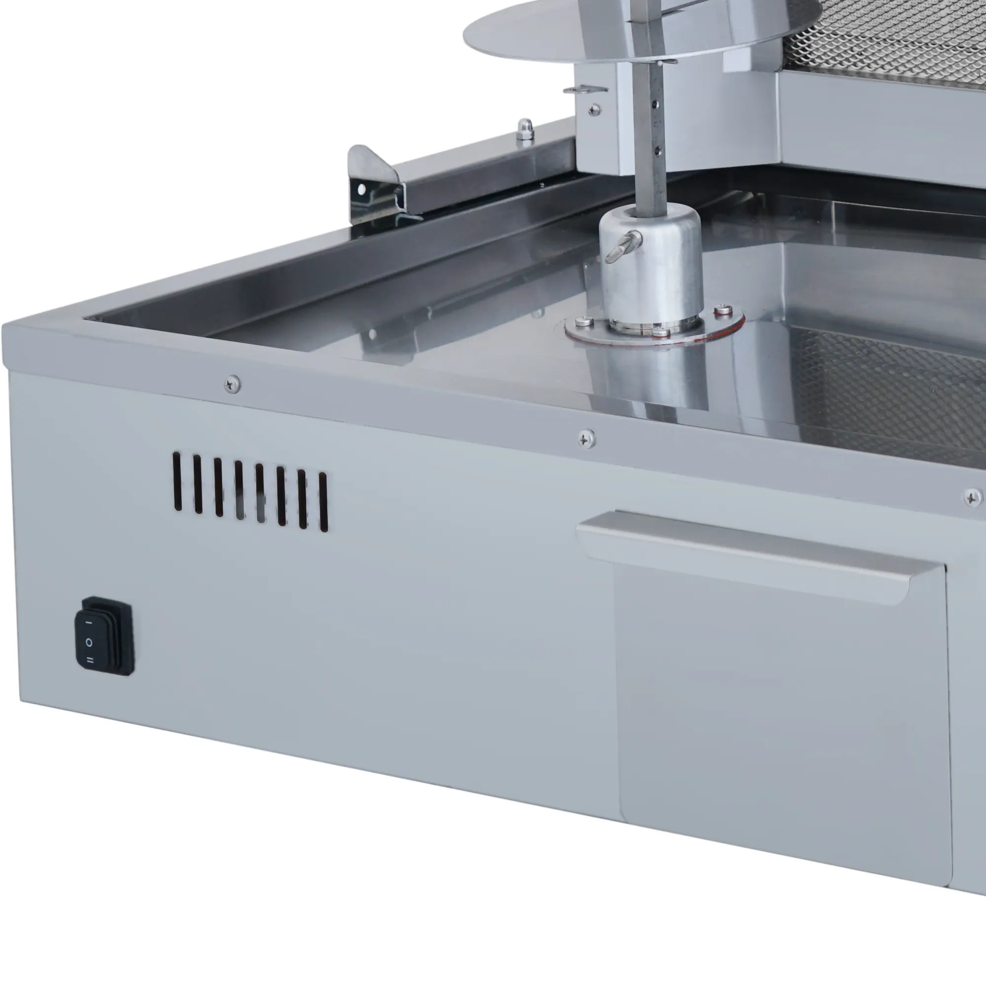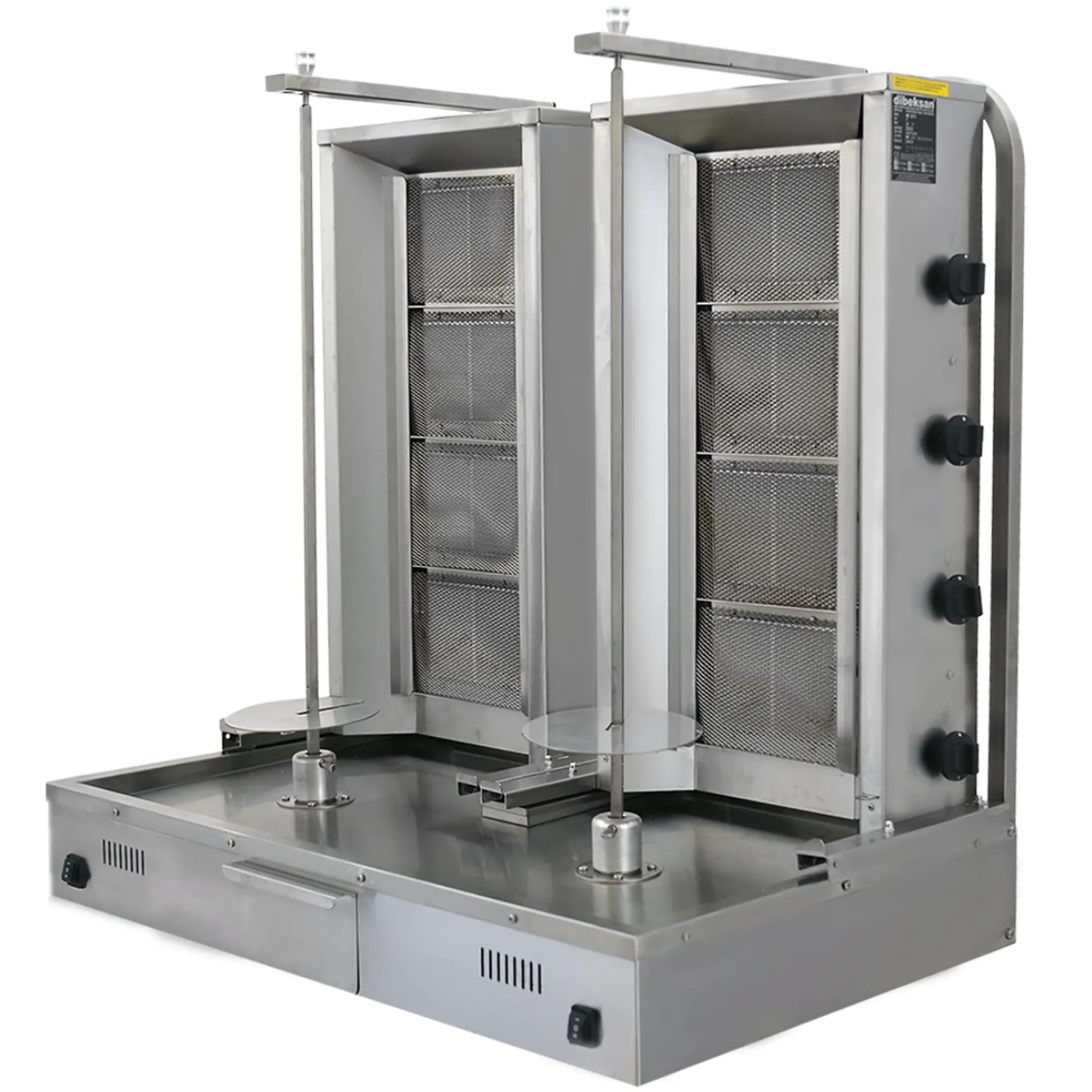В соответствии с директивой DMC 144 приоритет отдается безопасности и гигиене труда. Профессиональный Аппарат Для ШаурмыБлагодаря встроенной системе управления пламенем с предохранительным клапаном и высокоточным термопарам, устройство автоматически перекрывает подачу газа в течение нескольких секунд в случае возможного затухания пламени. Предохранитель защищает двигатель от утечек тока в системе, продлевая срок службы устройства и гарантируя безопасность пользователя. Оснащенная двигателем двойного действия, большим 2-литровым отсеком для хранения масла и перфорированным поддоном из нержавеющей стали, эта профессиональная модель является результатом опыта компании Dibeksan, накопленного с 1985 года. Сертифицировано CE. Благодаря высокому качеству своей продукции, это надежное и устойчивое вложение средств для ресторанов и гостиничных кухонь с большим объемом производства.