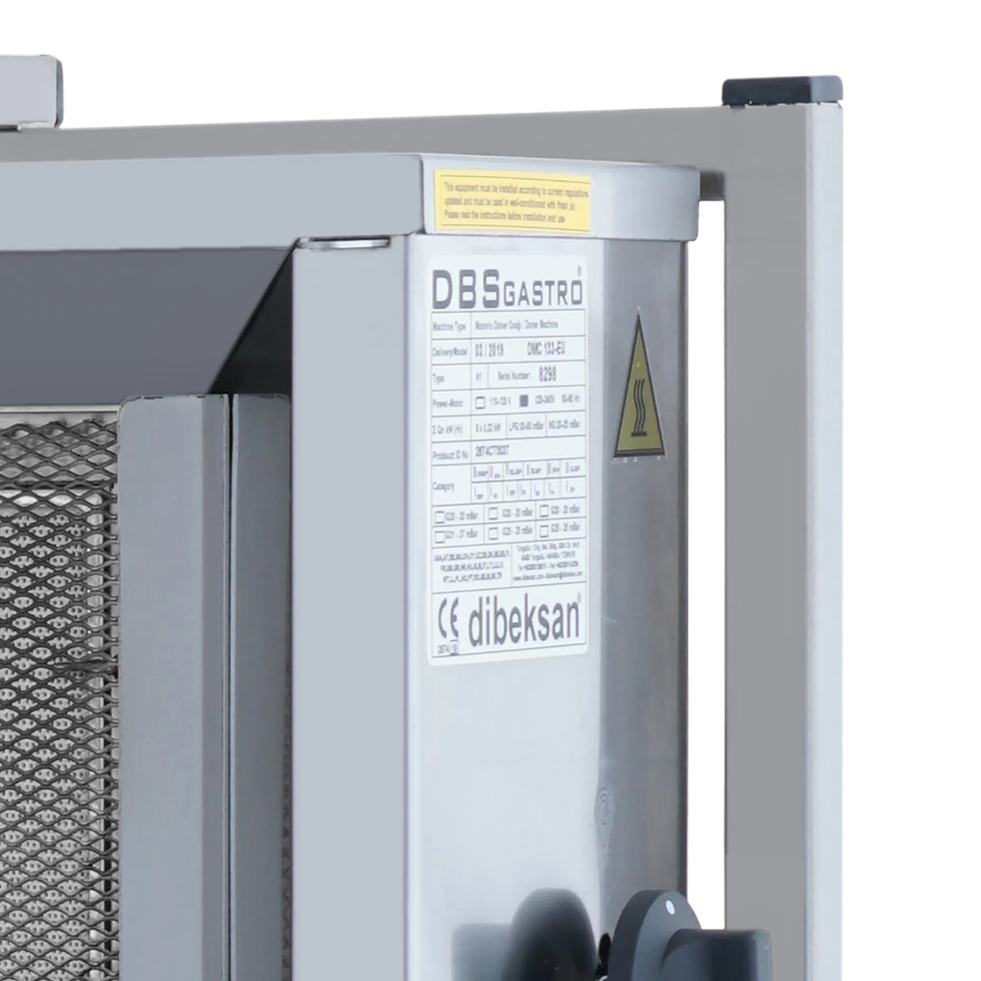 Промышленные кухни объединяют в себе высокую вместимость и операционную гибкость под одной крышей. Двойная печь для донер-кебаба DMC 144Это одна из самых амбициозных моделей Dibeksan, отражающая возможности компании по массовому производству. Двухрядная конструкция вертела, обеспечивающая вместимость 80+80 кг, позволяет предприятиям гибко готовить разные виды мяса одновременно или работать только с одной стороны в зависимости от интенсивности обслуживания. Оснащенная в общей сложности 8 независимо управляемыми лучистыми нагревателями, эта модель обеспечивает равномерное проникновение тепла в самые глубокие слои мяса. Это одно из важнейших технических преимуществ устройства. технология скольжения с миллиметровой точностьюЭто позволяет оператору расположить вращающийся клин на желаемом расстоянии от нагревательных элементов, максимально экономя энергию и способствуя приготовлению мяса с сохранением его вкуса и сочности.