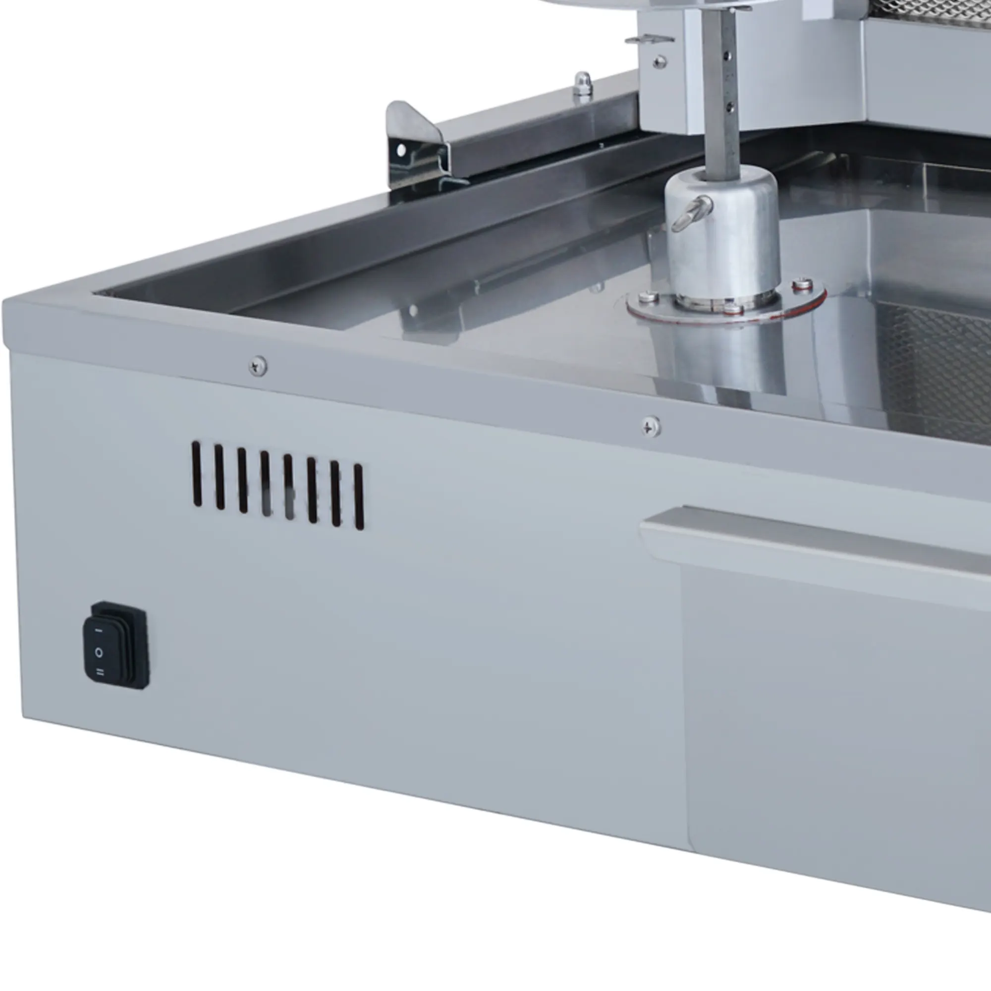 Operasyonel güvenlik ve malzeme kalitesinde Dibeksan standartlarını yansıtan DMC 433 NSF şavarma makinesi, etle temas eden tüm yüzeylerde AISI 304 kalite paslanmaz çelik kullanılarak üretilmiştir. Her bir radyanın maksimum ve minimum konumlarda bağımsız çalışabilmesi, düşük yoğunluklu servis saatlerinde enerji maliyetlerini minimize ederken; milimetrik kızak teknolojisi şeflere, döner takozunu radyanlara istenilen hassasiyette yaklaştırma kabiliyeti tanır. Entegre emniyet ventilli alev denetim tertibatı ve termoelemanlar sayesinde olası bir alev sönmesi durumunda gaz akışı otomatik olarak kesilir. Tesisatta oluşabilecek elektrik kaçaklarına karşı motoru koruyan emniyet sigortası ve çift yönlü motor yeteneği ile donatılan bu CE sertifikalı model, profesyonel mutfakların hem güvenli hem de yüksek performanslı en temel çözüm ortağıdır.