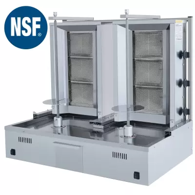 Endüstriyel döner üretiminde orta ölçekli işletmelerin verimlilik ve hijyen beklentilerini en üst seviyede karşılayan DMC 433 NSF Çiftli Döner Ocağı, Dibeksan’ın 1985’ten gelen mühendislik tecrübesinin prestijli bir örneğidir. 3 radyanlı iki bağımsız pişirme bölümünden oluşan (toplam 6 radyan) bu model, 40+40 kg’lık kapasitesiyle aynı anda et ve tavuk döneri gibi farklı ürünleri, kokuları birbirine karışmadan pişirme imkanı sunar. Cihazın küresel ölçekteki NSF sertifikası, üretiminde kullanılan tüm bileşenlerin uluslararası gıda güvenliği protokollerine tam uyumlu olduğunu ve hijyen denetimlerinden kusursuz geçtiğini kanıtlar. Bu belge, ihracat odaklı işletmeler ve yüksek hijyen standartlı mutfaklar için cihazı vazgeçilmez bir yatırım enstrümanı haline getirir.