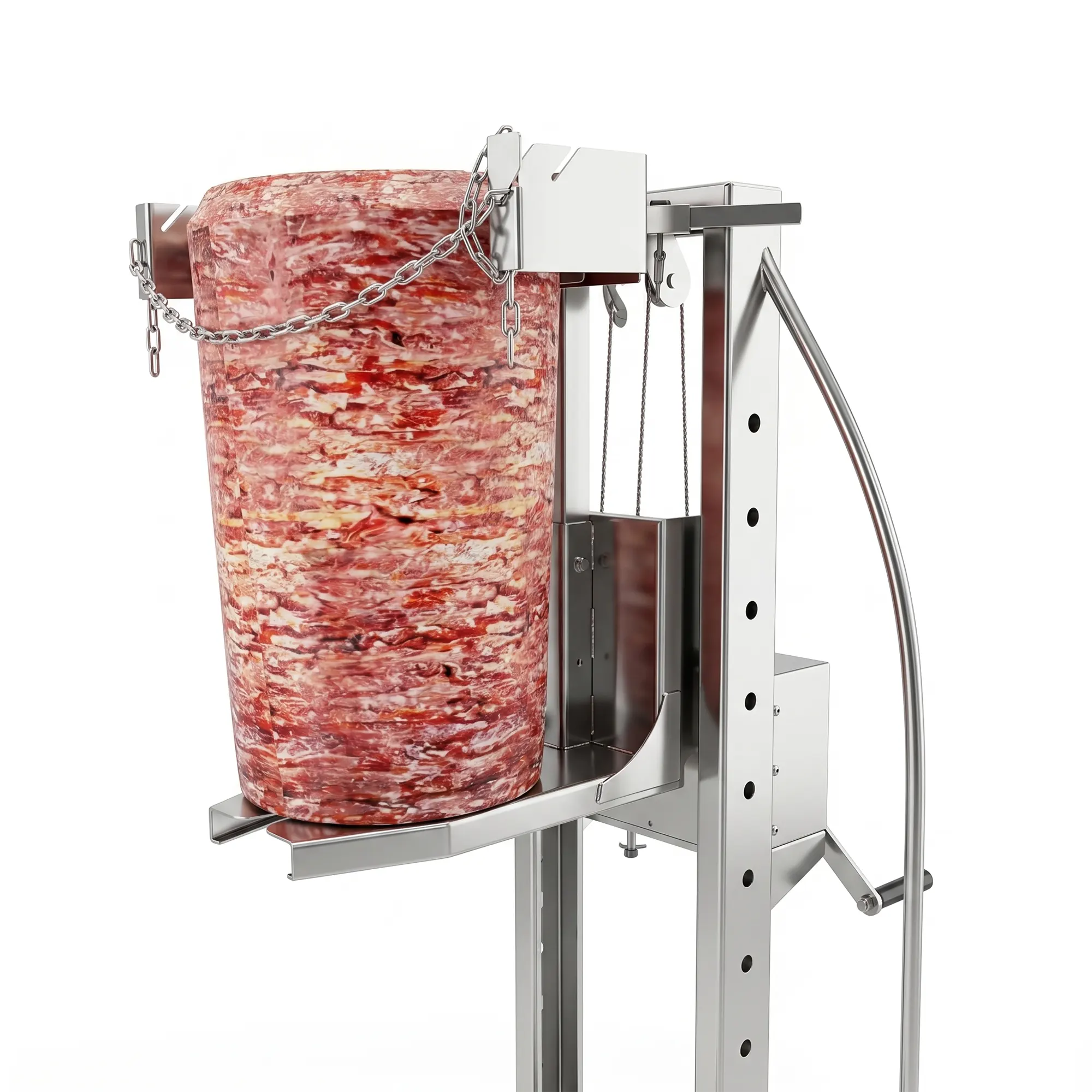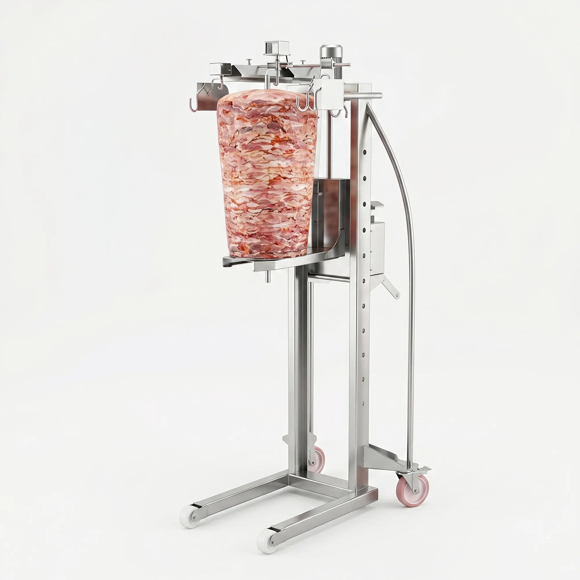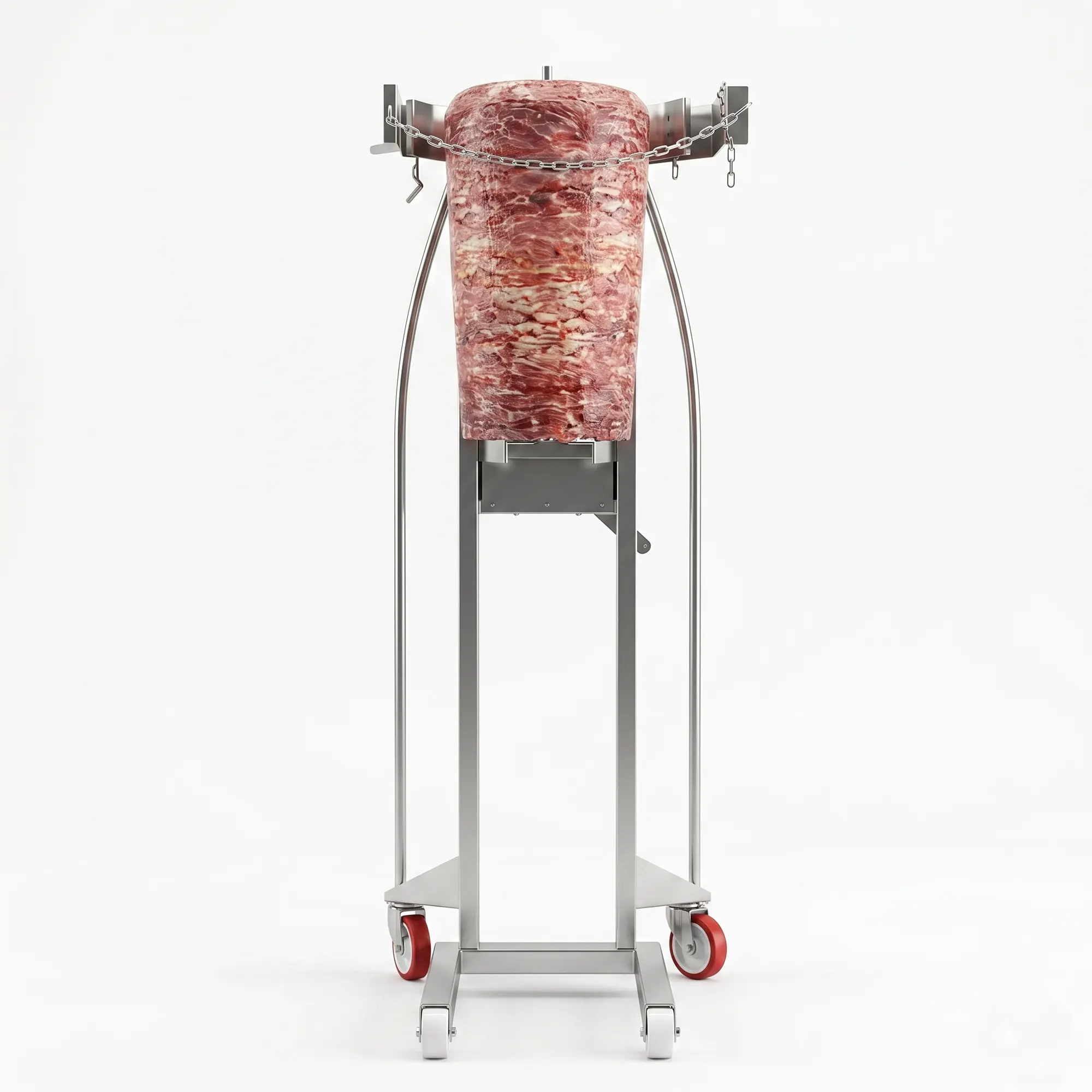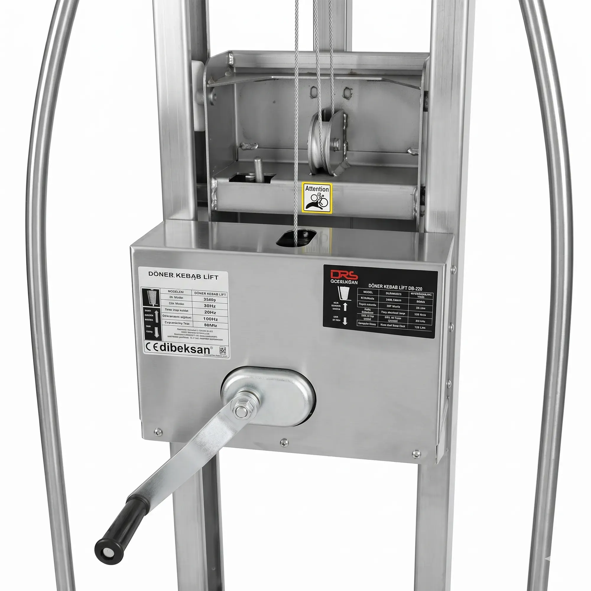DS-239 Döner Taşıma Lifti, yüksek kapasiteli endüstriyel döner işletmeleri ve entegre et tesislerinde, ağır döner takozlarının transfer sürecini profesyonelleştirmek amacıyla DİBEKSAN kalite standartlarıyla tasarlanmıştır. Hazırlık tezgahında sarımı tamamlanan mega döner bloklarının pişirme ocaklarına taşınması veya soğuk hava depolarına aktarılması, fiziksel güç gerektiren ve iş kazası riski barındıran zorlu bir operasyondur. DS-239; 260 kilograma kadar olan ağır yükleri sarsıntısız bir şekilde kaldırıp indirebilen özel mekanizması sayesinde, birden fazla personelin yapabileceği taşıma işlemini tek bir operatörün rahatlıkla ve güvenle yapabilmesine olanak tanır.